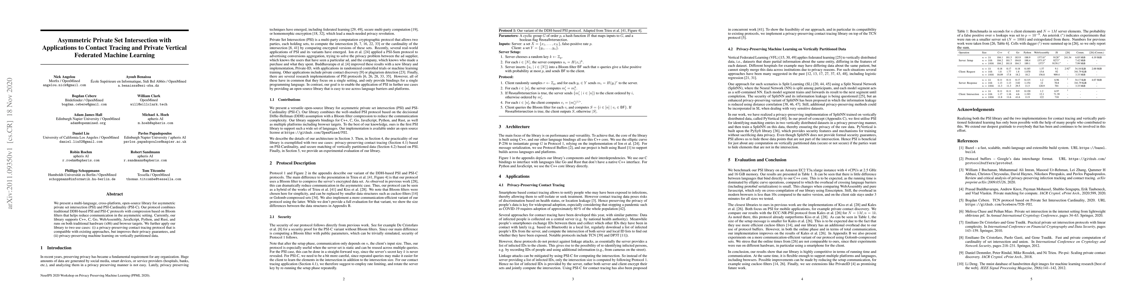 This research introduces a library for asymmetric private set intersection with improved privacy guarantees for contact tracing and vertically partitioned machine learning, reducing communication through compression-based Bloom filters.
