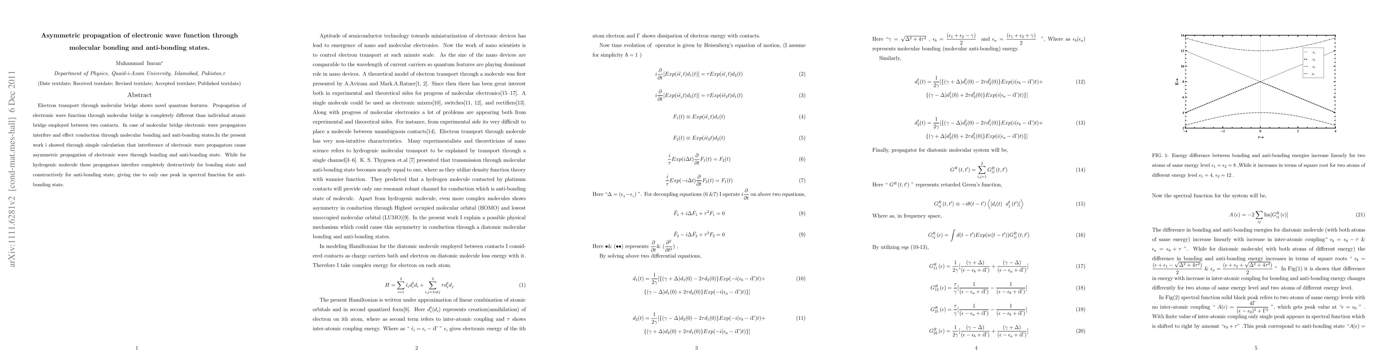 The research used a simple calculation to show that interference of electronic wave propagators causes asymmetric propagation of electronic wave through bonding and anti-bonding states.