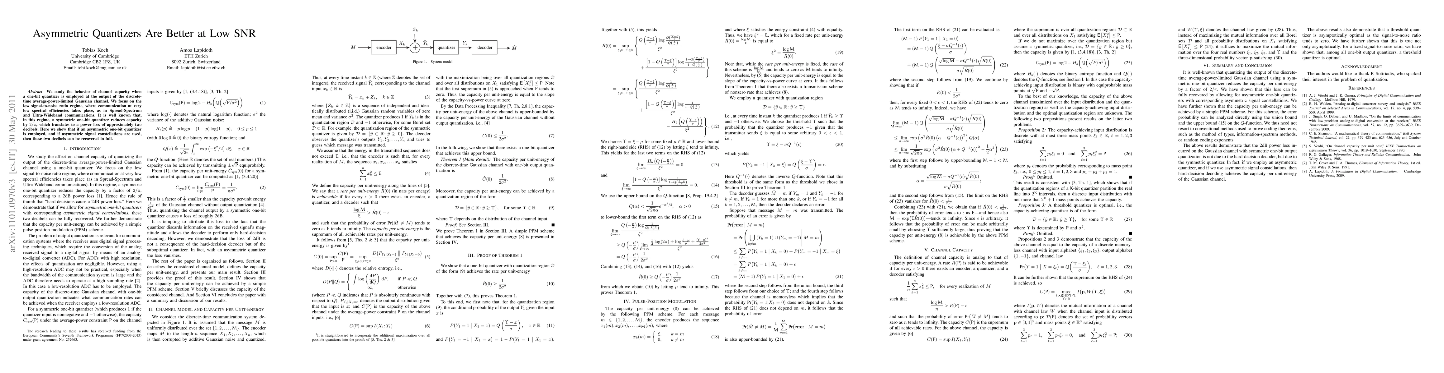 Asymmetric one-bit quantizers can recover lost capacity in low SNR regimes, unlike symmetric ones, which reduce capacity by 2/pi, resulting in a power loss of approximately two decibels.
