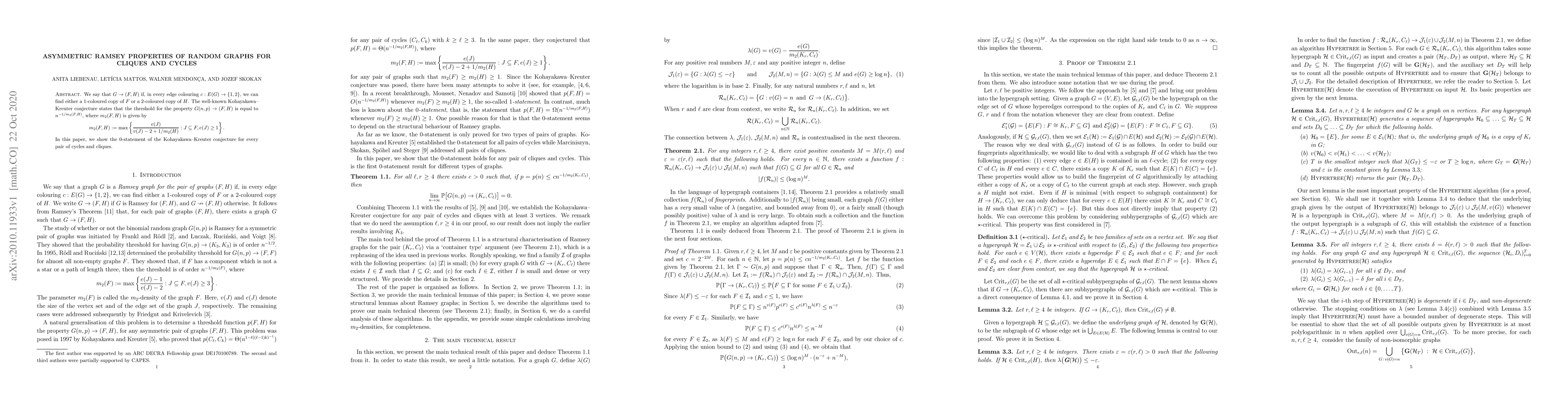This paper proves the 0-statement of the Kohayakawa-Kreuter conjecture for cycles and cliques in random graphs, showing that certain colorings can be reduced to specific subgraph patterns.
