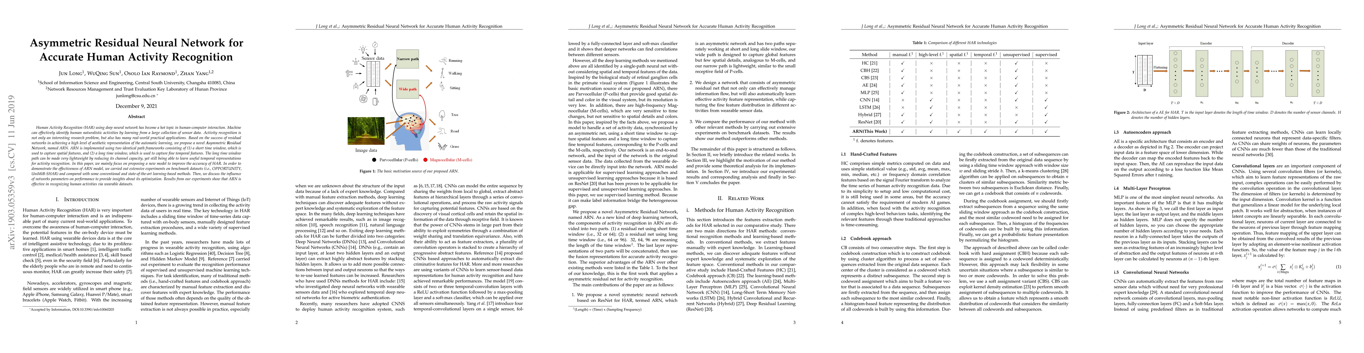 Researchers propose a new neural network architecture called Asymmetric Residual Neural Network (ARN) to improve human activity recognition accuracy, showing promising results on wearable datasets.