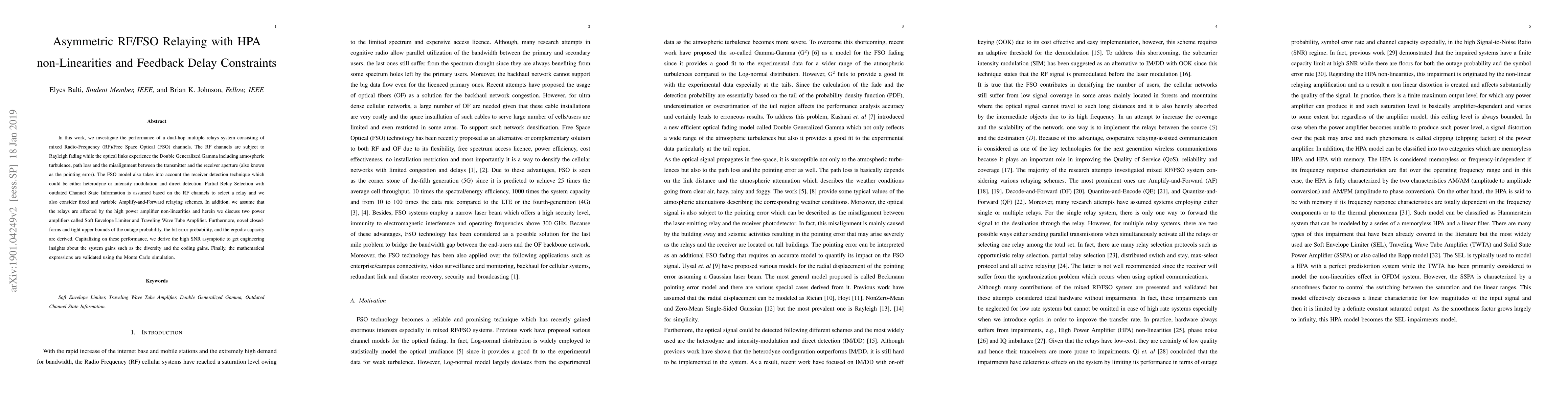 In this work, we investigate the performance of a dual-hop multiple relays system consisting of mixed Radio-Frequency (RF)/Free Space Optical (FSO) channels. The RF channels are subject to Rayleigh fading while the optical links experience the Double Generalized Gamma including atmospheric turbulence, path loss and the misalignment between the transmitter and the receiver aperture (also known as the pointing error). The FSO model also takes into account the receiver detection technique which could be either heterodyne or intensity modulation and direct detection. Partial Relay Selection with outdated Channel State Information is assumed based on the RF channels to select a relay and we also consider fixed and variable Amplify-and-Forward relaying schemes. In addition, we assume that the relays are affected by the high power amplifier non-linearities and herein we discuss two power amplifiers called Soft Envelope Limiter and Traveling Wave Tube Amplifier. Furthermore, novel closed-forms and tight upper bounds of the outage probability, the bit error probability, and the ergodic capacity are derived. Capitalizing on these performance, we derive the high SNR asymptotic to get engineering insights about the system gains such as the diversity and the coding gains. Finally, the mathematical expressions are validated using the Monte Carlo simulation.