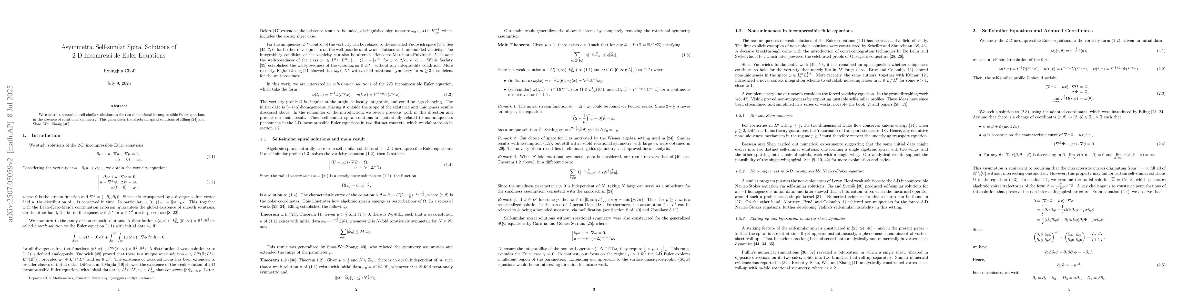 We construct nonradial, self-similar solutions to the two-dimensional incompressible Euler equations in the absence of rotational symmetry. This generalizes the algebraic spiral solutions of Elling and Shao-Wei-Zhang.