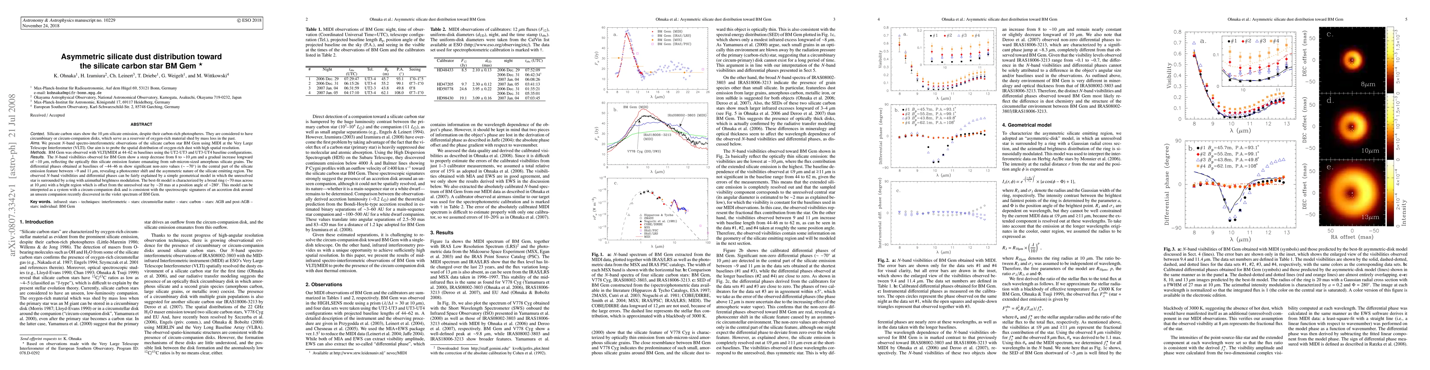 This study uses high-resolution spectro-interferometry to investigate the silicate dust distribution around the silicate carbon star BM Gem, revealing an asymmetric silicate emission region and a photocenter shift indicative of a circum-companion disk. The best-fit model suggests a broad ring with azimuthal brightness modulation, supporting the presence of an accretion disk around an unseen companion.