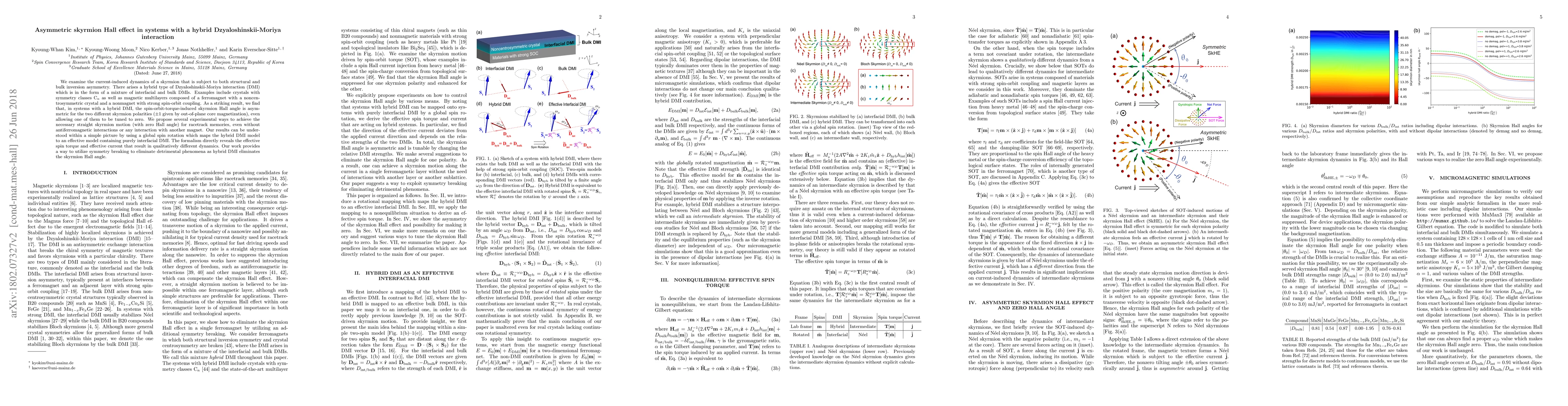 We examine the current-induced dynamics of a skyrmion that is subject to both structural and bulk inversion asymmetry. There arises a hybrid type of Dzyaloshinskii-Moriya interaction (DMI) which is in the form of a mixture of interfacial and bulk DMIs. Examples include crystals with symmetry classes C$_n$ as well as magnetic multilayers composed of a ferromagnet with a noncentrosymmetric crystal and a nonmagnet with strong spin-orbit coupling. As a striking result, we find that, in systems with a hybrid DMI, the spin-orbit-torque-induced skyrmion Hall angle is asymmetric for the two different skyrmion polarities ($\pm 1$ given by out-of-plane core magnetization), even allowing one of them to be tuned to zero. We propose several experimental ways to achieve the necessary straight skyrmion motion (with zero Hall angle) for racetrack memories, even without antiferromagnetic interactions or any interaction with another magnet. Our results can be understood within a simple picture by using a global spin rotation which maps the hybrid DMI model to an effective model containing purely interfacial DMI. The formalism directly reveals the effective spin torque and effective current that result in qualitatively different dynamics. Our work provides a way to utilize symmetry breaking to eliminate detrimental phenomena as hybrid DMI eliminates the skyrmion Hall angle.
