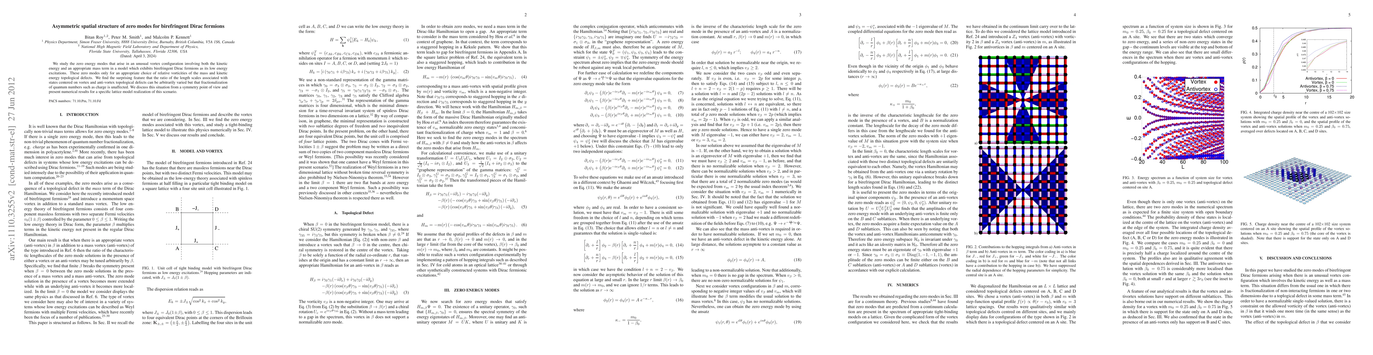 We study the zero energy modes that arise in an unusual vortex configuration involving both the kinetic energy and an appropriate mass term in a model which exhibits birefringent Dirac fermions as its low energy excitations. We find the surprising feature that the ratio of the length scales associated with states centered on vortex and anti-vortex topological defects can be arbitrarily varied but that fractionalization of quantum numbers such as charge is unaffected. We discuss this situation from a symmetry point of view and present numerical results for a specific lattice model realization of this scenario.