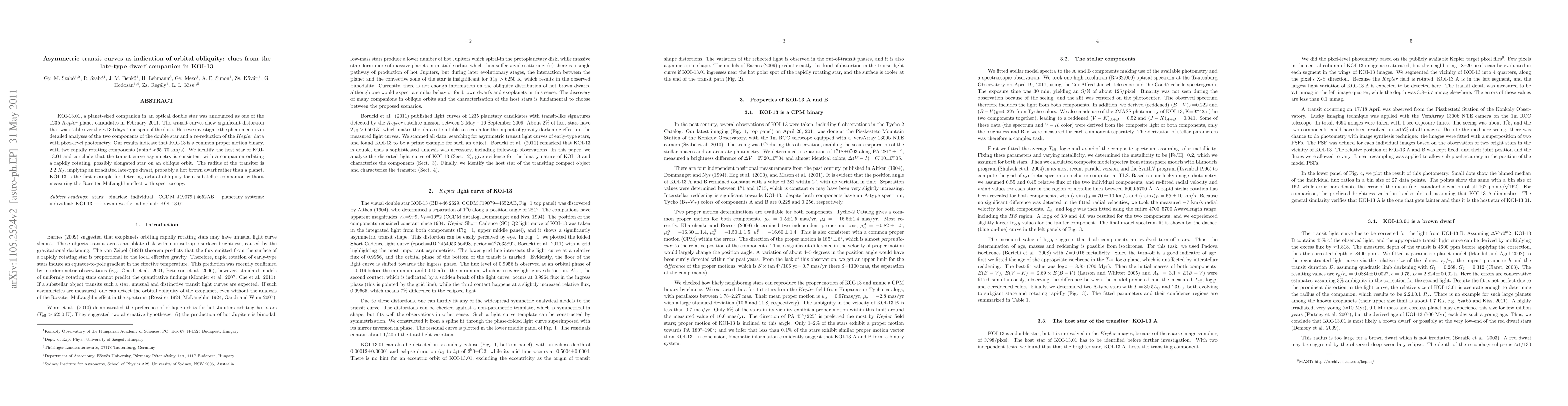 This paper investigates the asymmetric transit curves of KOI-13.01, a planet-sized companion in a double star system, revealing it as a common proper motion binary with rapidly rotating components. The asymmetry suggests orbital obliquity, indicating the companion orbits a rapidly rotating, possibly elongated star.