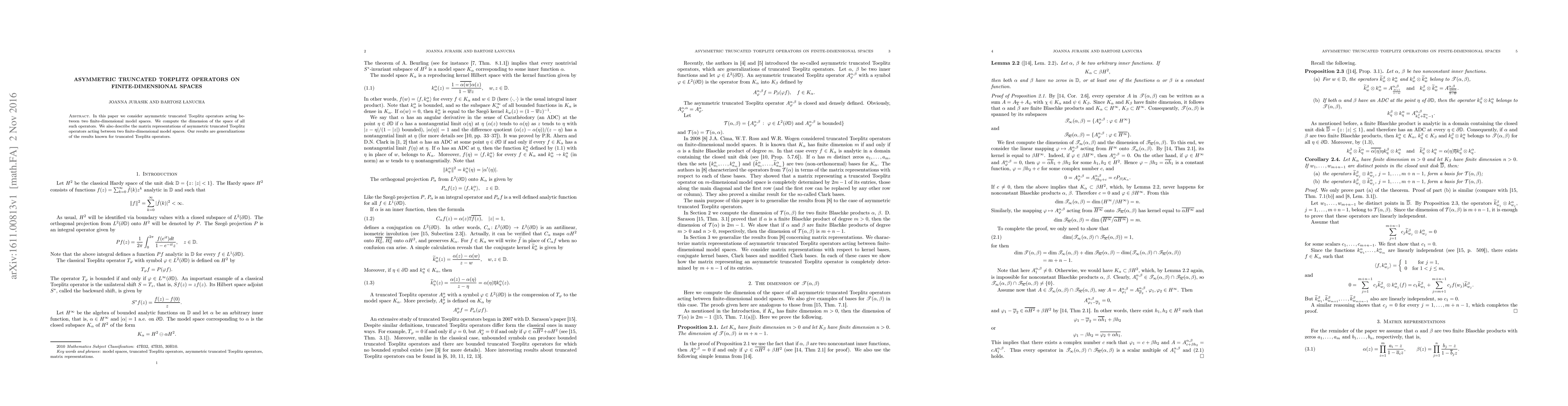 This paper studies asymmetric truncated Toeplitz operators between two finite-dimensional model spaces, computing their dimension and describing their matrix representations, thereby extending existing results for standard truncated Toeplitz operators.