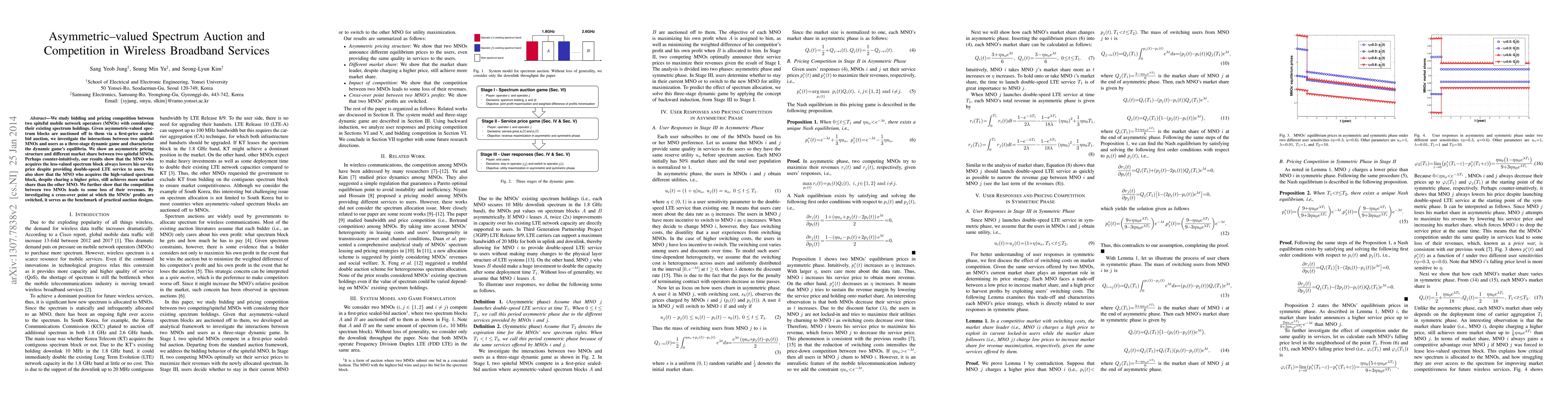 We study bidding and pricing competition between two spiteful mobile network operators (MNOs) with considering their existing spectrum holdings. Given asymmetric-valued spectrum blocks are auctioned off to them via a first-price sealed-bid auction, we investigate the interactions between two spiteful MNOs and users as a three-stage dynamic game and characterize the dynamic game's equilibria. We show an asymmetric pricing structure and different market share between two spiteful MNOs. Perhaps counter-intuitively, our results show that the MNO who acquires the less-valued spectrum block always lowers his service price despite providing double-speed LTE service to users. We also show that the MNO who acquires the high-valued spectrum block, despite charing a higher price, still achieves more market share than the other MNO. We further show that the competition between two MNOs leads to some loss of their revenues. By investigating a cross-over point at which the MNOs' profits are switched, it serves as the benchmark of practical auction designs.
