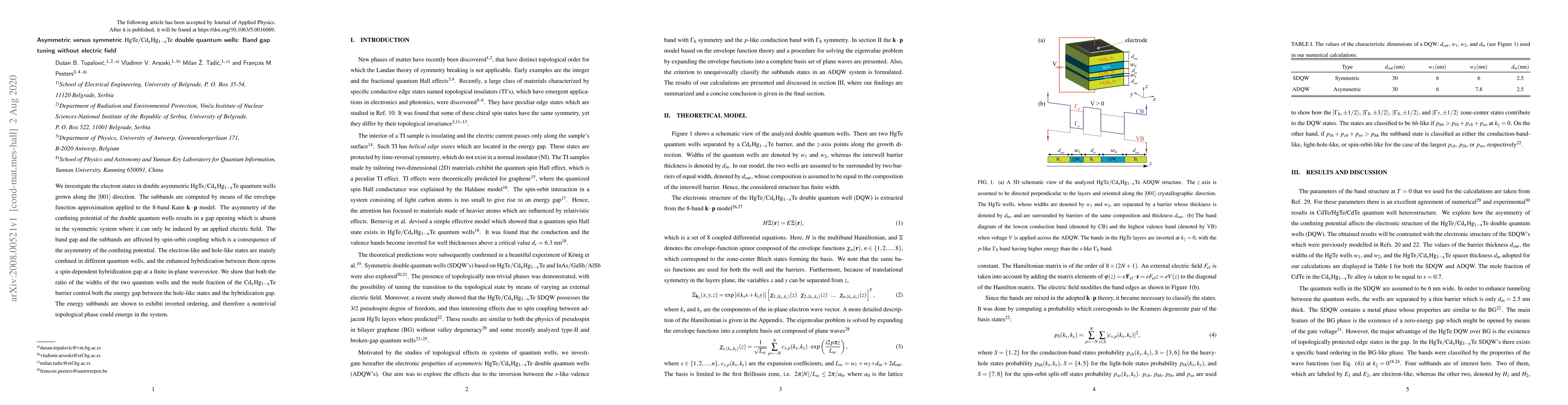 This paper investigates electron states in asymmetric $\rm{HgTe/Cd_{x}Hg_{1-x}Te}$ double quantum wells, revealing that asymmetry induces a tunable band gap without the need for an electric field. The study uses the 8-band Kane $\bf{k}\cdot\bf{p}$ model to show that the asymmetry leads to a spin-dependent hybridization gap and inverted subband ordering, potentially enabling a nontrivial topological phase.