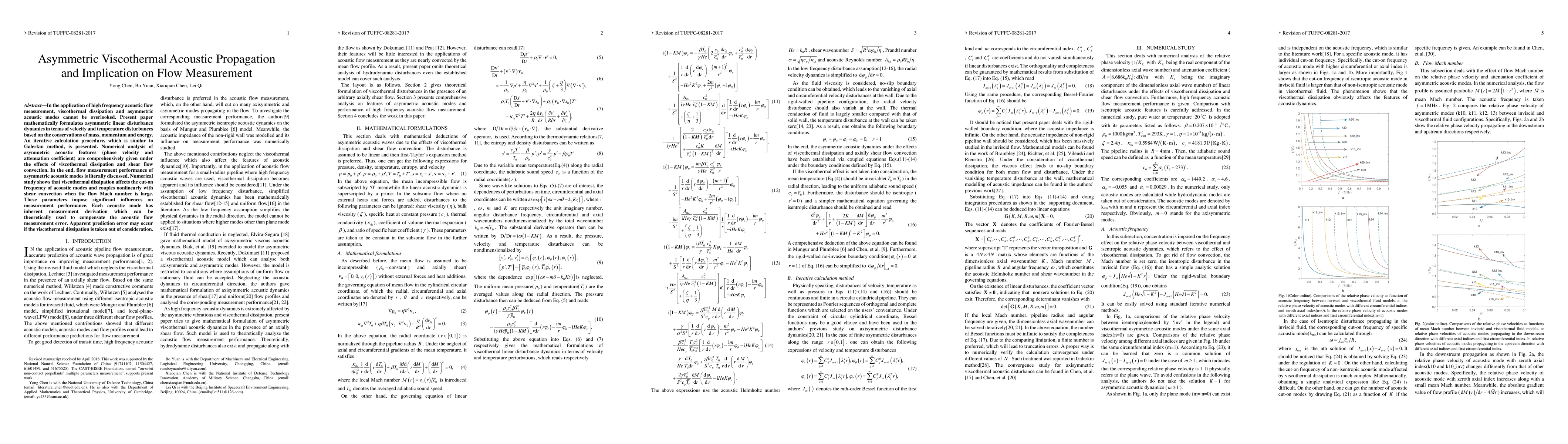 This paper mathematically formulates asymmetric acoustic propagation dynamics in high-frequency flow measurement, considering viscothermal dissipation and shear flow effects. It discusses the impact of these factors on measurement performance and proposes a method to compensate for errors due to viscothermal dissipation.