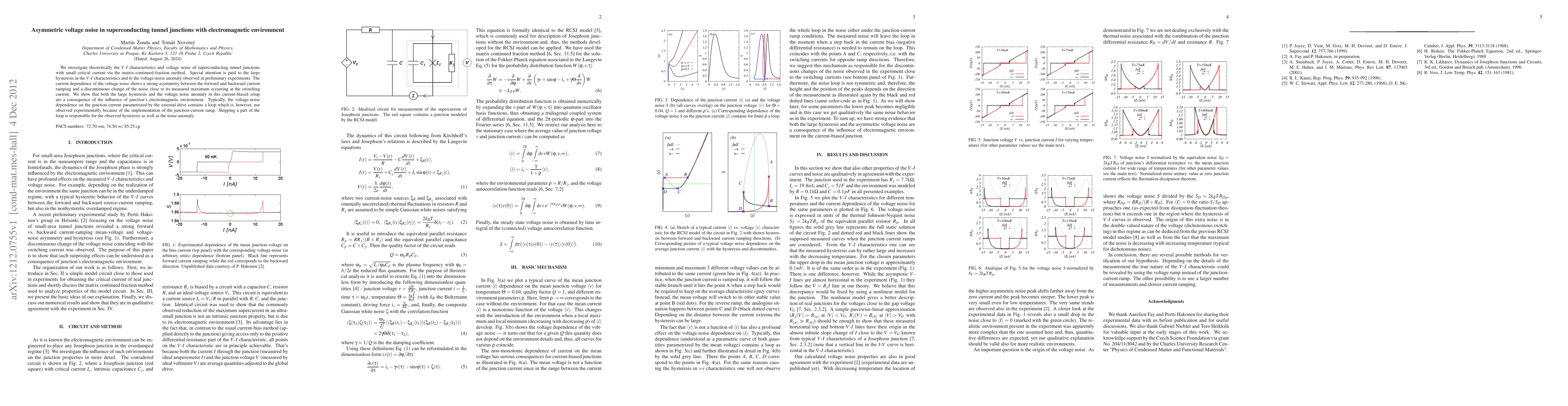 Theoretical study reveals that electromagnetic environment in superconducting tunnel junctions causes asymmetric voltage noise and hysteresis in their I-V characteristics. These effects occur due to the loop-shaped dependence of voltage noise on current, which is skipped when ramping the current, leading to observed anomalies.