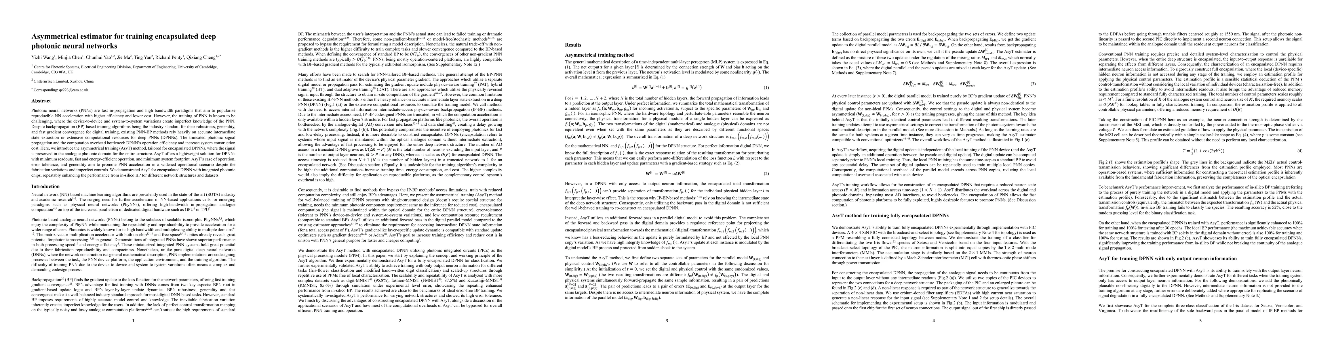 The paper introduces an asymmetrical training (AT) method for grey-box deep photonic neural networks, which allows training without detailed knowledge of the physical transformation, achieving improved classification accuracy on various datasets compared to backpropagation. AT provides a lightweight training alternative with minimal hardware and computational overhead.
