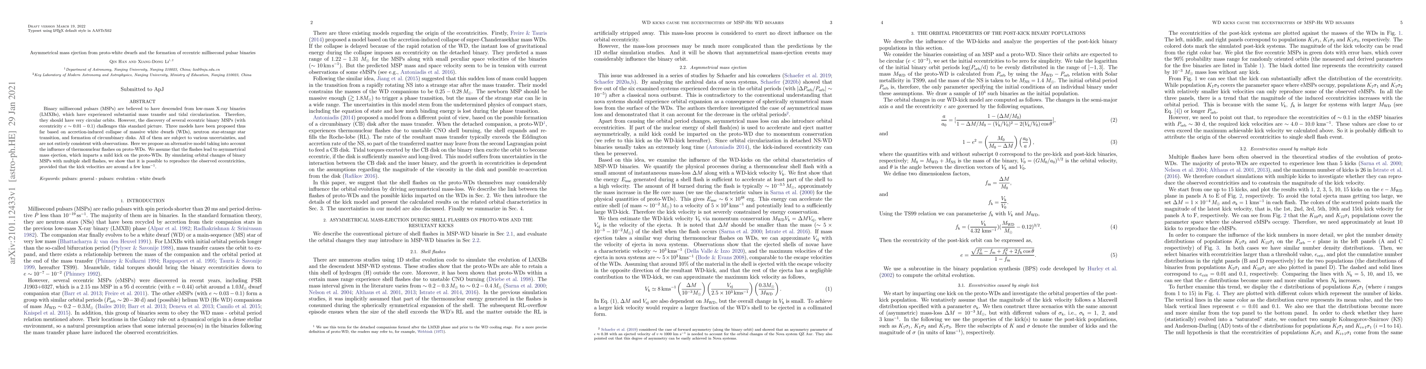 This paper proposes a new model for the formation of eccentric millisecond pulsar binaries, suggesting that asymmetrical mass ejection from proto-white dwarfs due to thermonuclear flashes can impart mild kicks, resulting in the observed eccentricities. Simulations show that this mechanism can reproduce the observed eccentricities if the kick velocities are around a few kms$^{-1}$.
