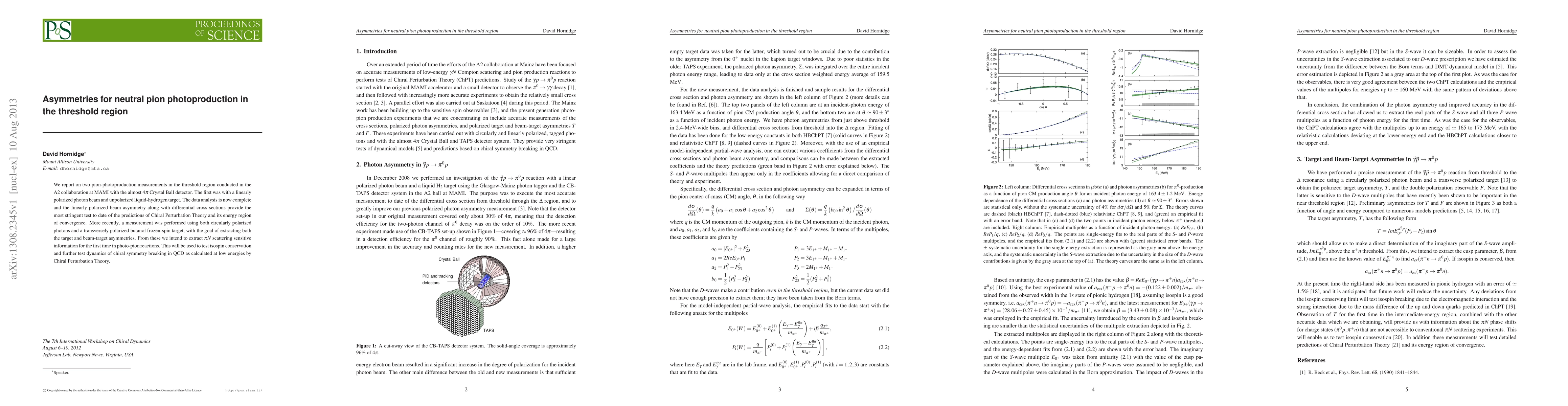 The research presents an advanced experimental setup and analysis techniques for measuring asymmetries in neutral pion photoproduction, providing detailed multipole extraction and testing Chiral Perturbation Theory predictions in the threshold region.