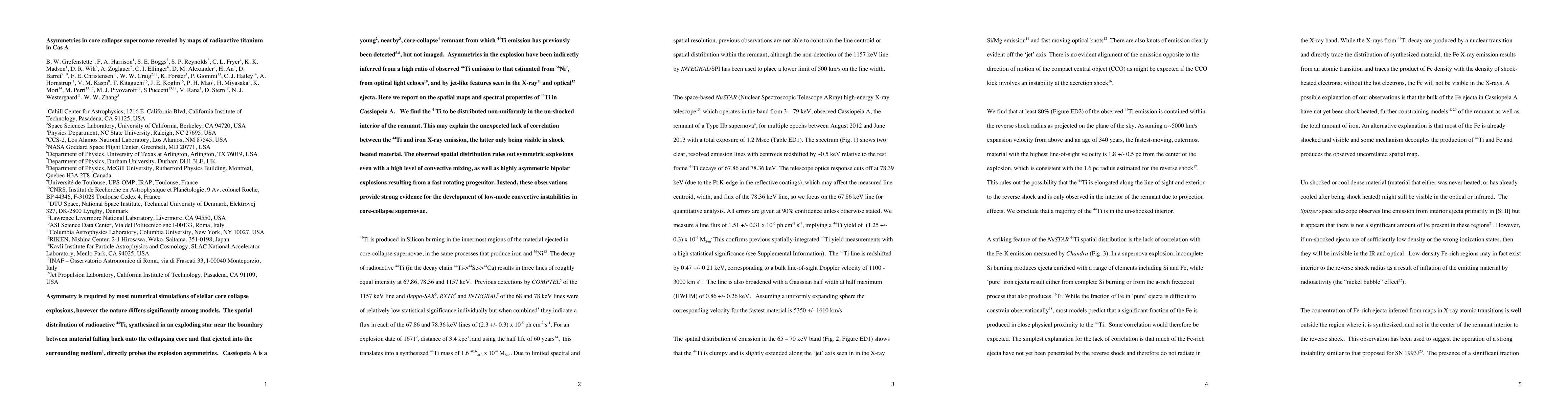 New research reveals asymmetries in core-collapse supernovae using radioactive 44Ti maps from CassiopeiaA, providing evidence for low-mode convective instabilities in these explosions.