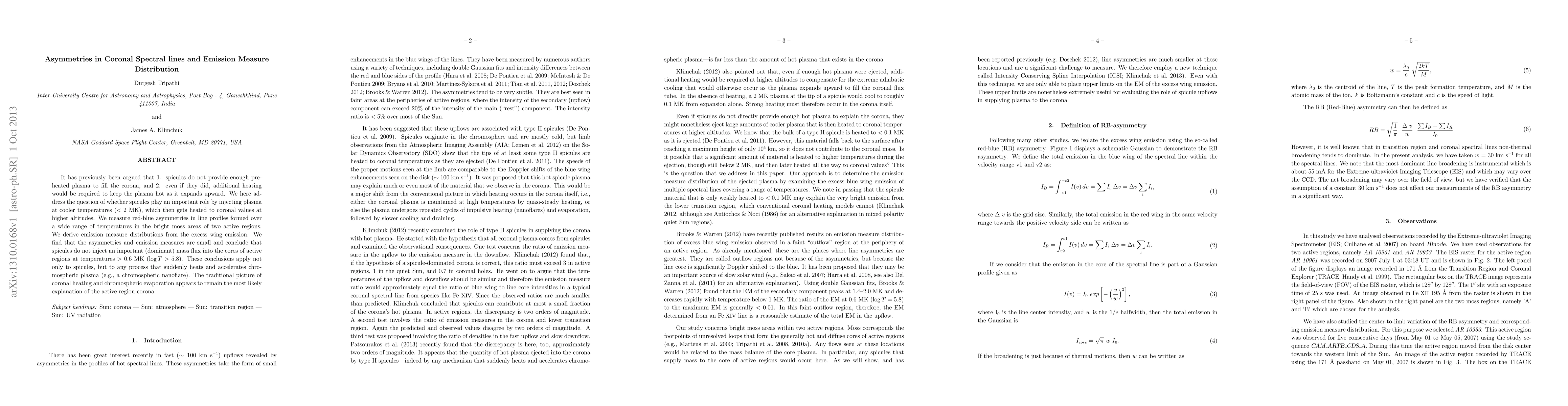 It has previously been argued that 1. spicules do not provide enough pre-heated plasma to fill the corona, and 2. even if they did, additional heating would be required to keep the plasma hot as it expands upward. We here address the question of whether spicules play an important role by injecting plasma at cooler temperatures ($< 2$ MK), which then gets heated to coronal values at higher altitudes. We measure red-blue asymmetries in line profiles formed over a wide range of temperatures in the bright moss areas of two active regions. We derive emission measure distributions from the excess wing emission. We find that the asymmetries and emission measures are small and conclude that spicules do not inject an important (dominant) mass flux into the cores of active regions at temperatures $> 0.6$ MK ($\log T > 5.8$). These conclusions apply not only to spicules, but to any process that suddenly heats and accelerates chromospheric plasma (e.g., a chromospheric nanoflare). The traditional picture of coronal heating and chromospheric evaporation appears to remain the most likely explanation of the active region corona.
