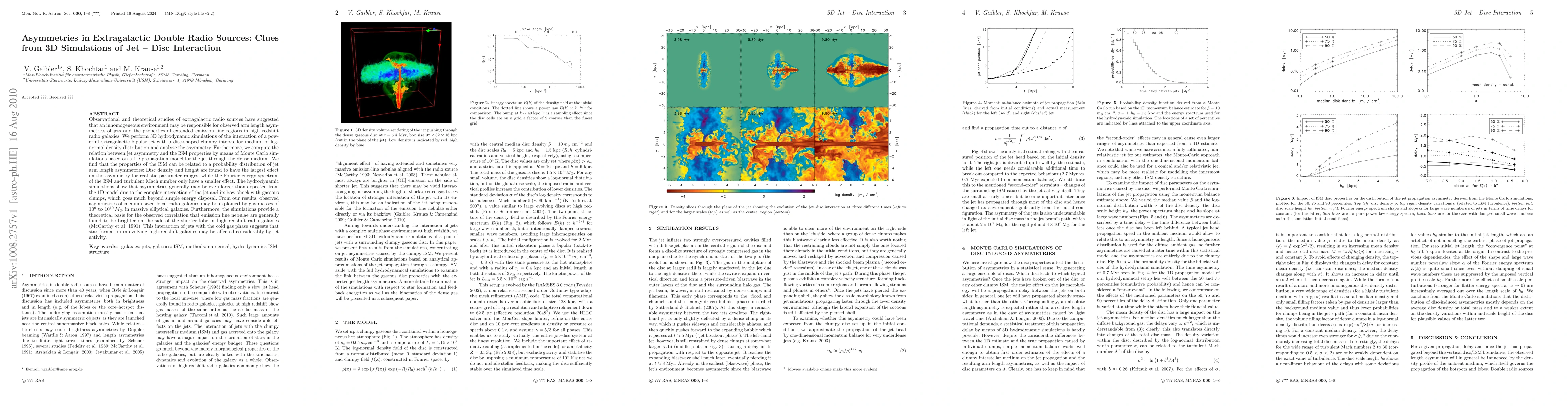 Observational and theoretical studies of extragalactic radio sources have suggested that an inhomogeneous environment may be responsible for observed arm length asymmetries of jets and the properties of extended emission line regions in high redshift radio galaxies. We perform 3D hydrodynamic simulations of the interaction of a powerful extragalactic bipolar jet with a disc-shaped clumpy interstellar medium of log-normal density distribution and analyze the asymmetry. Furthermore, we compute the relation between jet asymmetry and the ISM properties by means of Monte Carlo simulations based on a 1D propagation model for the jet through the dense medium. We find that the properties of the ISM can be related to a probability distribution of jet arm length asymmetries: Disc density and height are found to have the largest effect on the asymmetry for realistic parameter ranges, while the Fourier energy spectrum of the ISM and turbulent Mach number only have a smaller effect. The hydrodynamic simulations show that asymmetries generally may be even larger than expected from the 1D model due to the complex interaction of the jet and its bow shock with gaseous clumps, which goes much beyond simple energy disposal. From our results, observed asymmetries of medium-sized local radio galaxies may be explained by gas masses of 10^9 to 10^10 solar masses in massive elliptical galaxies. Furthermore, the simulations provide a theoretical basis for the observed correlation that emission line nebulae are generally found to be brighter on the side of the shorter lobe in high redshift radio galaxies (McCarthy et al. 1991). This interaction of jets with the cold gas phase suggests that star formation in evolving high redshift galaxies may be affected considerably by jet activity.