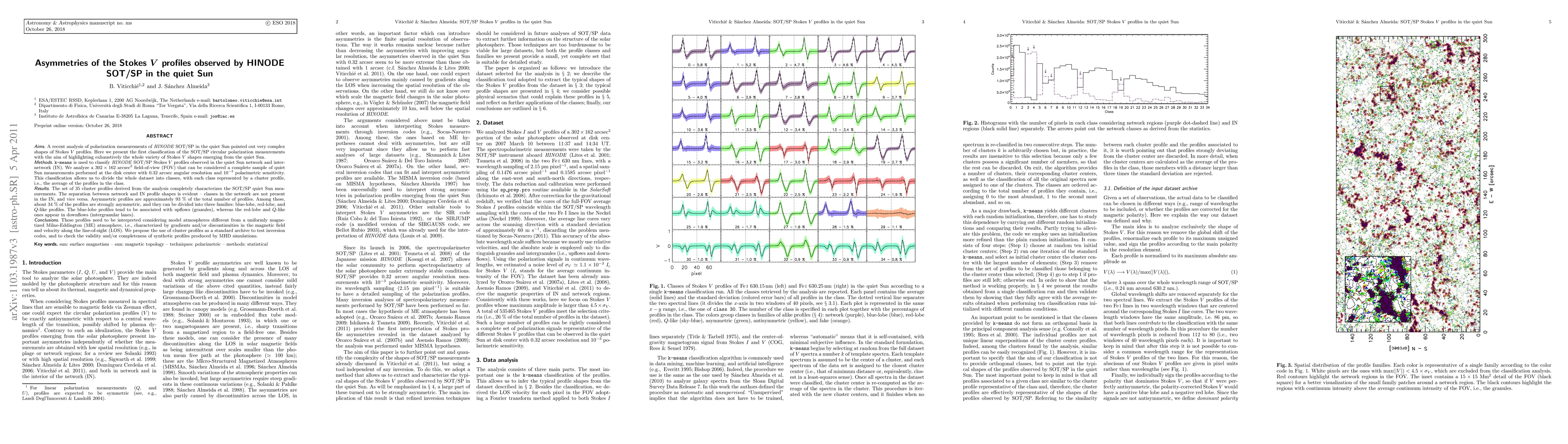 This study classifies HINODE SOT/SP circular polarization measurements in the quiet Sun, revealing diverse Stokes V profiles using k-means clustering. The analysis reveals distinct network and internetwork profiles, with asymmetric profiles comprising 93% of the dataset, including blue-lobe, red-lobe, and Q-like types associated with different flows.