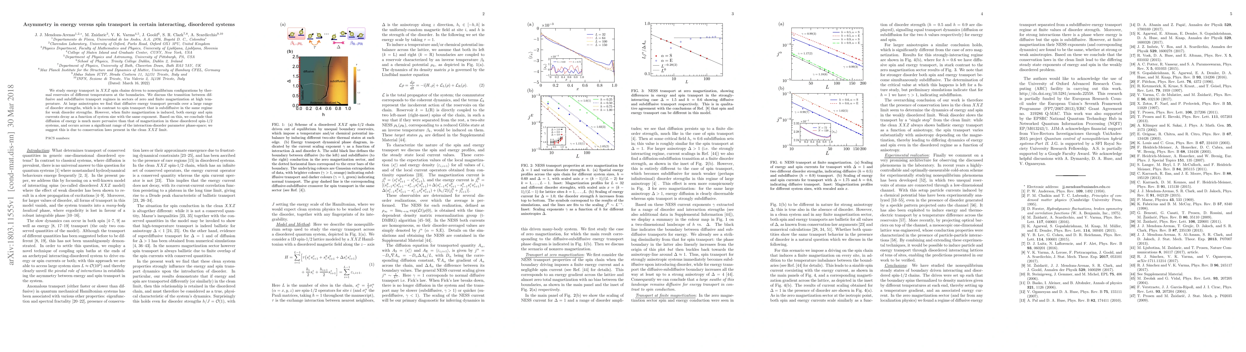 This paper investigates energy and spin transport in XXZ spin chains under nonequilibrium conditions, revealing that energy transport exhibits diffusive behavior over a large range of disorder strengths, while spin transport remains subdiffusive for weak disorder, except when finite magnetization is induced, where both transport modes decay similarly.