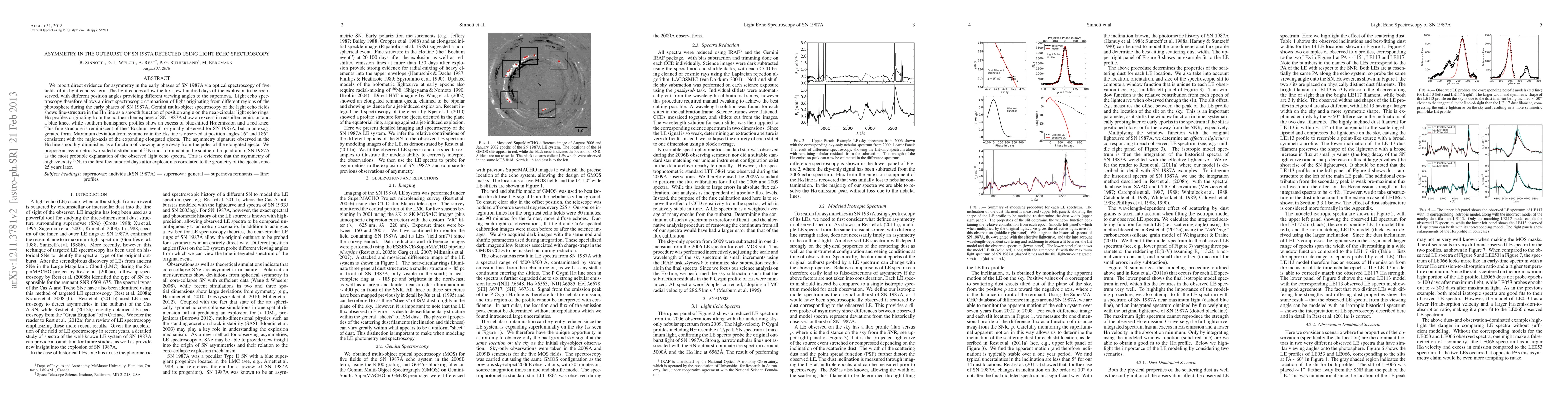 We report direct evidence for asymmetry in the early phases of SN 1987A via optical spectroscopy of five fields of its light echo system. The light echoes allow the first few hundred days of the explosion to be reobserved, with different position angles providing different viewing angles to the supernova. Light echo spectroscopy therefore allows a direct spectroscopic comparison of light originating from different regions of the photosphere during the early phases of SN 1987A. Gemini multi-object spectroscopy of the light echo fields shows fine-structure in the H-alpha line as a smooth function of position angle on the near-circular light echo rings. H-alpha profiles originating from the northern hemisphere of SN 1987A show an excess in redshifted emission and a blue knee, while southern hemisphere profiles show an excess of blueshifted H-alpha emission and a red knee. This fine-structure is reminiscent of the "Bochum event" originally observed for SN 1987A, but in an exaggerated form. Maximum deviation from symmetry in the H-alpha line is observed at position angles 16 and 186 degrees, consistent with the major-axis of the expanding elongated ejecta. The asymmetry signature observed in the H-alpha line smoothly diminishes as a function of viewing angle away from the poles of the elongated ejecta. We propose an asymmetric two-sided distribution of 56Ni most dominant in the southern far quadrant of SN 1987A as the most probable explanation of the observed light echo spectra. This is evidence that the asymmetry of high-velocity 56Ni in the first few hundred days after explosion is correlated to the geometry of the ejecta some 25 years later.