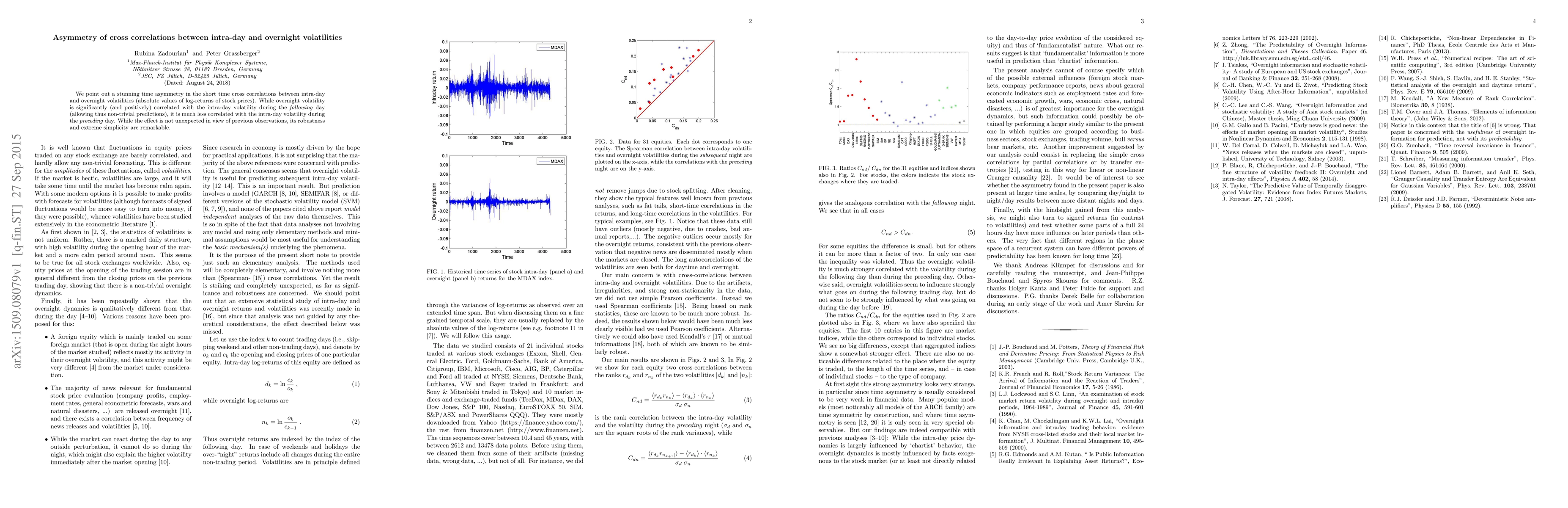 We point out a stunning time asymmetry in the short time cross correlations between intra-day and overnight volatilities (absolute values of log-returns of stock prices). While overnight volatility is significantly (and positively) correlated with the intra-day volatility during the \textit{following} day (allowing thus non-trivial predictions), it is much less correlated with the intra-day volatility during the \textit{preceding} day. While the effect is not unexpected in view of previous observations, its robustness and extreme simplicity are remarkable.
