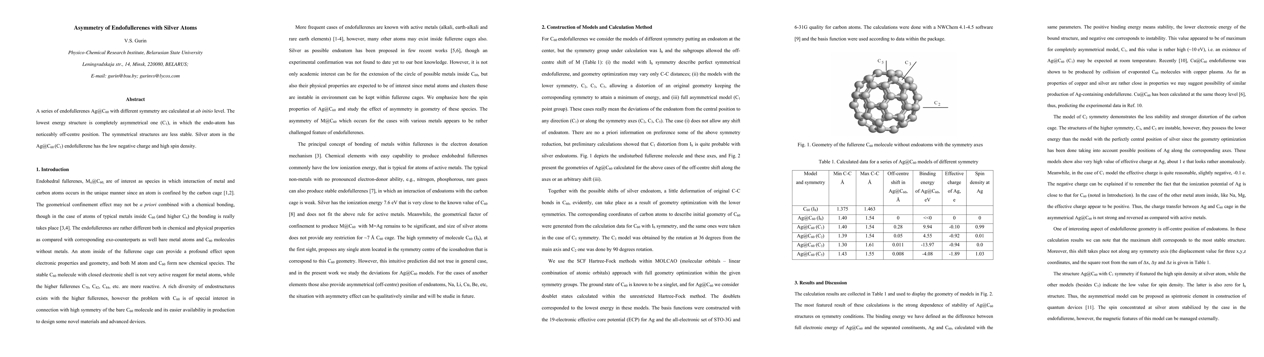 Researchers found that an asymmetrical endofullerene with a silver atom has lower stability than symmetrical structures, while the silver atom itself exhibits low negative charge and high spin density.