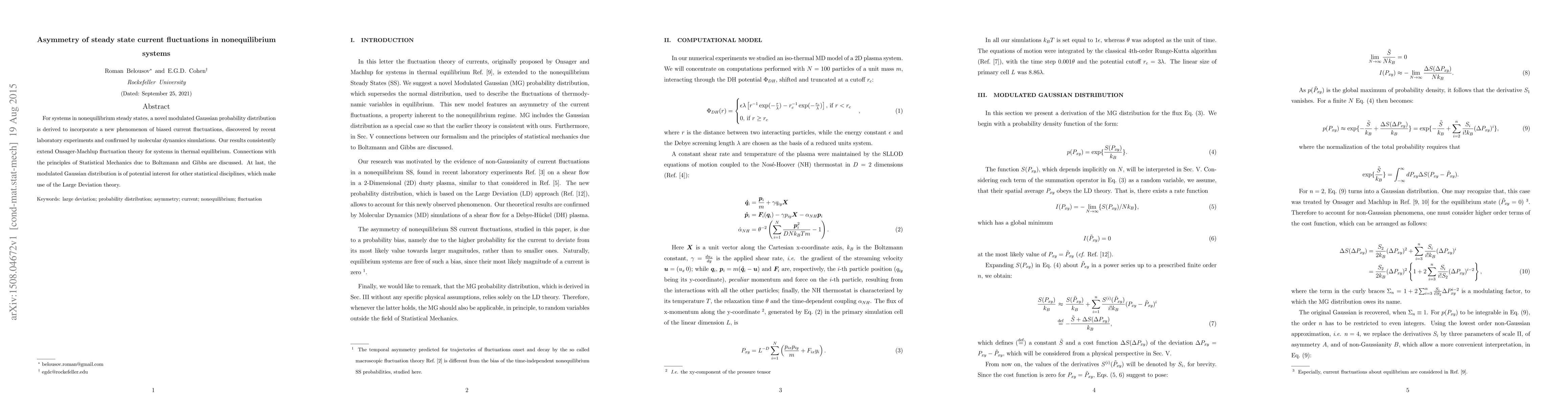 For systems in nonequilibrium steady states, a novel modulated Gaussian probability distribution is derived to incorporate a new phenomenon of biased current fluctuations, discovered by recent laboratory experiments and confirmed by molecular dynamics simulations. Our results consistently extend Onsager-Machlup fluctuation theory for systems in thermal equilibrium. Connections with the principles of Statistical Mechanics due to Boltzmann and Gibbs are discussed. At last, the modulated Gaussian distribution is of potential interest for other statistical disciplines, which make use of the Large Deviation theory.