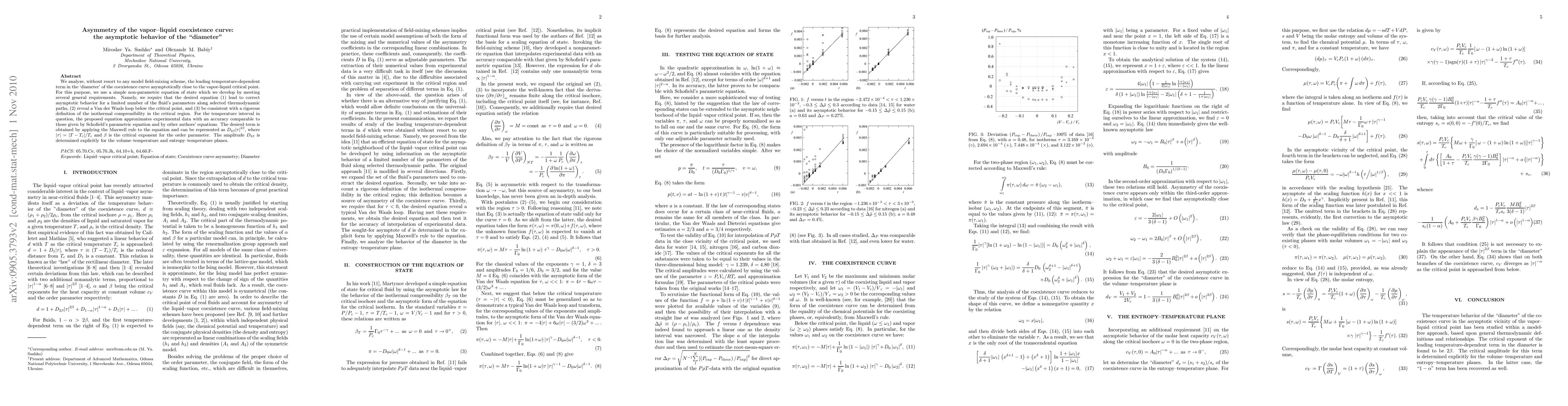 We analyze, without resort to any model field-mixing scheme, the leading temperature-dependent term in the "diameter" of the coexistence curve asymptotically close to the vapor-liquid critical point. For this purpose, we use a simple non-parametric equation of state which we develop by meeting several general requirements. Namely, we require that the desired equation (1) lead to correct asymptotic behavior for a limited number of the fluid's parameters along selected thermodynamic paths, (2) reveal a Van der Waals loop below the critical point, and (3) be consistent with a rigorous definition of the isothermal compressibility in the critical region. For the temperature interval in question, the proposed equation approximates experimental data with an accuracy comparable to those given by Schofield's parametric equation and by other authors' equations. The desired term is obtained by applying the Maxwell rule to the equation and can be represented as D_{2 \beta} | \tau |^{2 \beta}, where | \tau | = | T - T_{c} | / T_{c}, and \beta is the critical exponent for the order parameter. The amplitude D_{2 \beta} is determined explicitly for the volume-temperature and entropy-temperature planes.