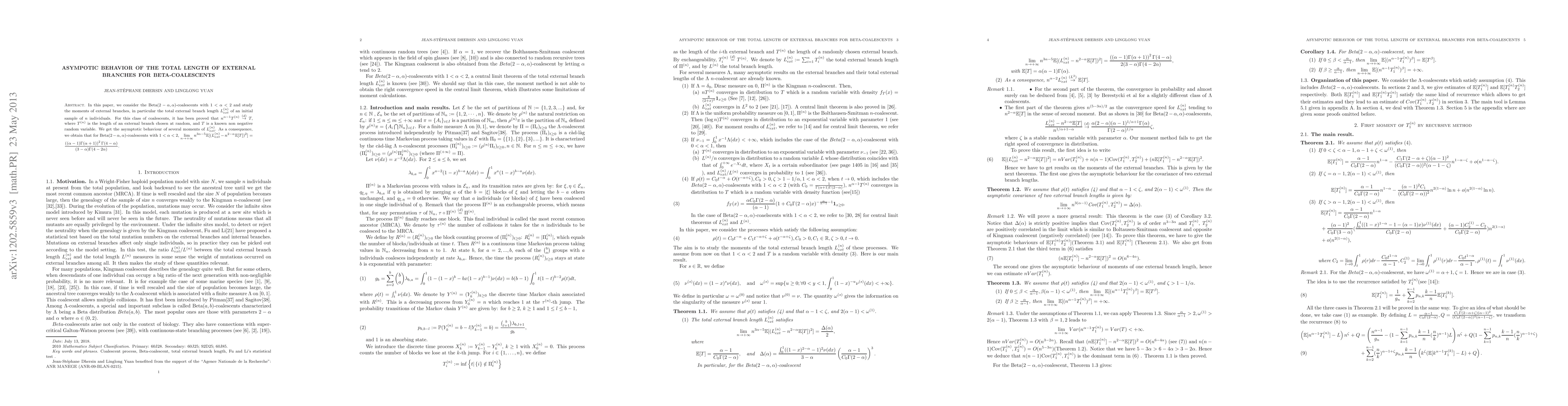 We consider a ${\Lambda}$-coalescent and we study the asymptotic behavior of the total length $L^{(n)}_{ext}$ of the external branches of the associated $n$-coalescent. For Kingman coalescent, i.e. ${\Lambda}={\delta}_0$, the result is well known and is useful, together with the total length $L^{(n)}$, for Fu and Li's test of neutrality of mutations% under the infinite sites model asumption . For a large family of measures ${\Lambda}$, including Beta$(2-{\alpha},{\alpha})$ with $0<\alpha<1$, M{\"o}hle has proved asymptotics of $L^{(n)}_{ext}$. Here we consider the case when the measure ${\Lambda}$ is Beta$(2-{\alpha},{\alpha})$, with $1<\alpha<2$. We prove that $n^{{\alpha}-2}L^{(n)}_{ext}$ converges in $L^2$ to $\alpha(\alpha-1)\Gamma(\alpha)$. As a consequence, we get that $L^{(n)}_{ext}/L^{(n)}$ converges in probability to $2-\alpha$. To prove the asymptotics of $L^{(n)}_{ext}$, we use a recursive construction of the $n$-coalescent by adding individuals one by one. Asymptotics of the distribution of $d$ normalized external branch lengths and a related moment result are also given.