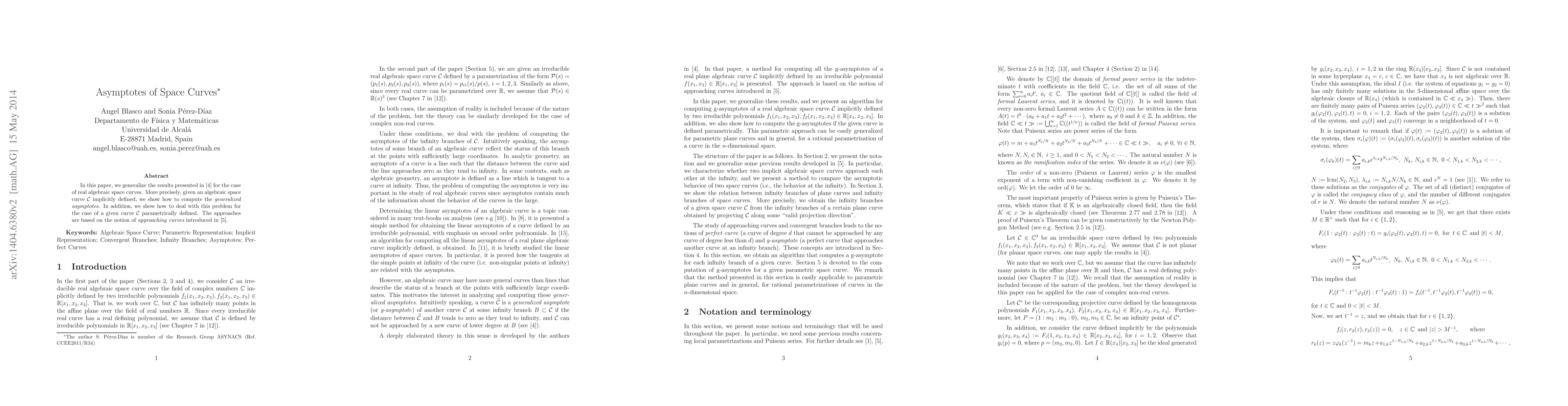 In this paper, we generalize the results presented in [5] for the case of real algebraic space curves. More precisely, given an algebraic space curve C (parametrically or implicitly defined), we show how to compute the generalized asymptotes. The approach is based on the notion of perfect curve introduced from the concepts and results presented in [4].