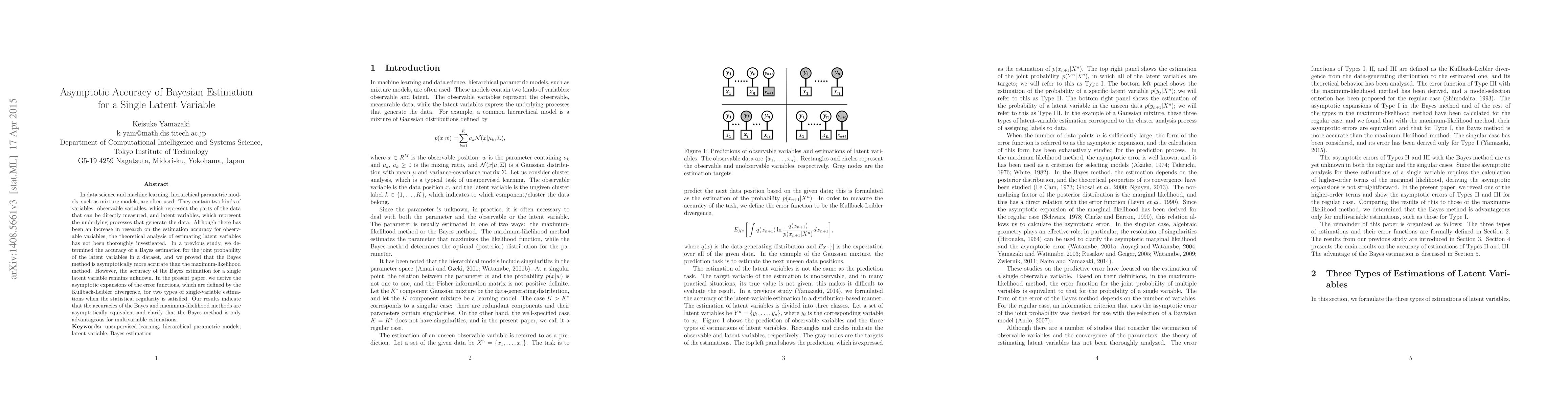 This paper investigates the asymptotic accuracy of Bayesian estimation for a single latent variable within hierarchical parametric models, finding that while Bayesian methods are superior for joint probability estimations, their accuracy is asymptotically equivalent to maximum-likelihood methods when estimating a single latent variable.