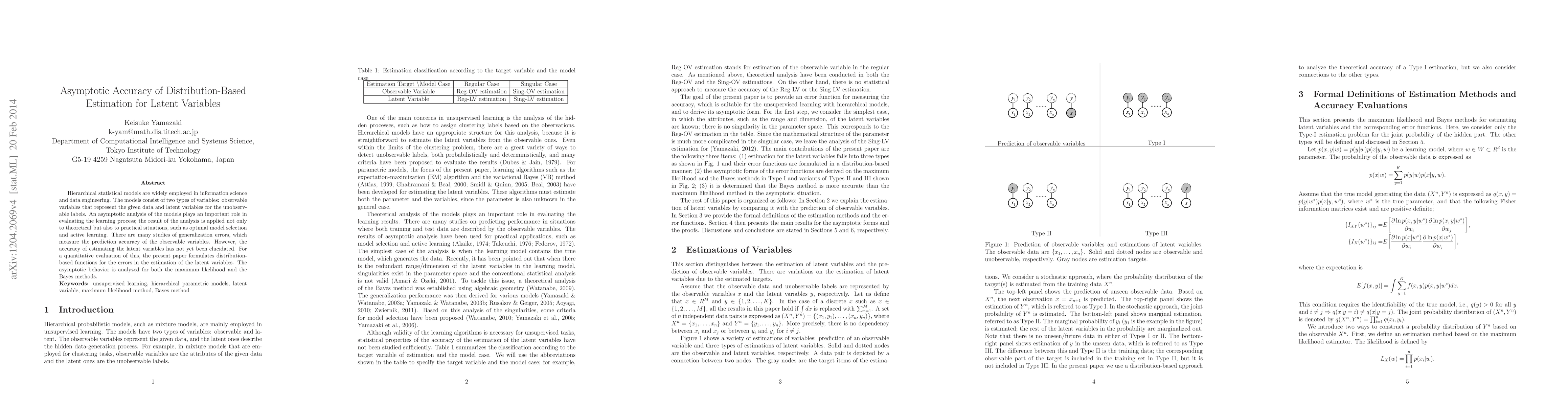This paper investigates the asymptotic accuracy of distribution-based estimation for latent variables in hierarchical statistical models, analyzing both maximum likelihood and Bayes methods to evaluate the learning process and its practical applications in model selection and active learning.