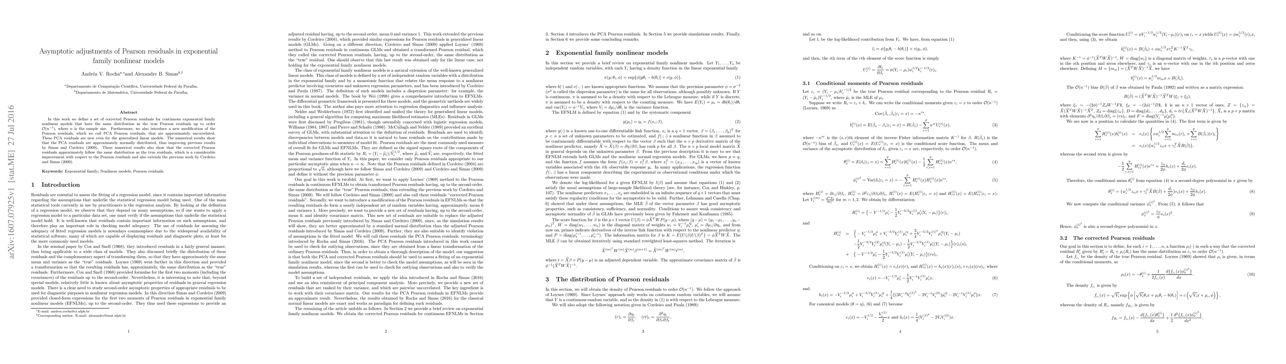 This paper proposes corrected Pearson residuals for continuous exponential family nonlinear models that maintain the same distribution as true residuals up to $\mathcal{O}(n^{-1})$. It also introduces PCA Pearson residuals, which are approximately uncorrelated and normally distributed, improving upon previous results.