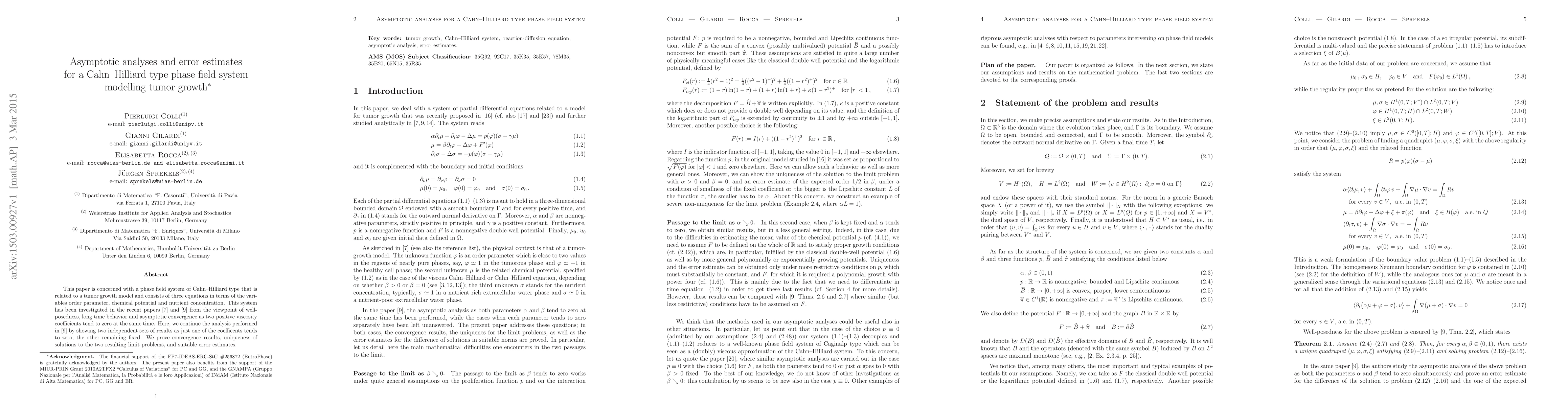 This paper analyzes a Cahn-Hilliard type phase field system modeling tumor growth, showing convergence results and error estimates as viscosity coefficients tend to zero.