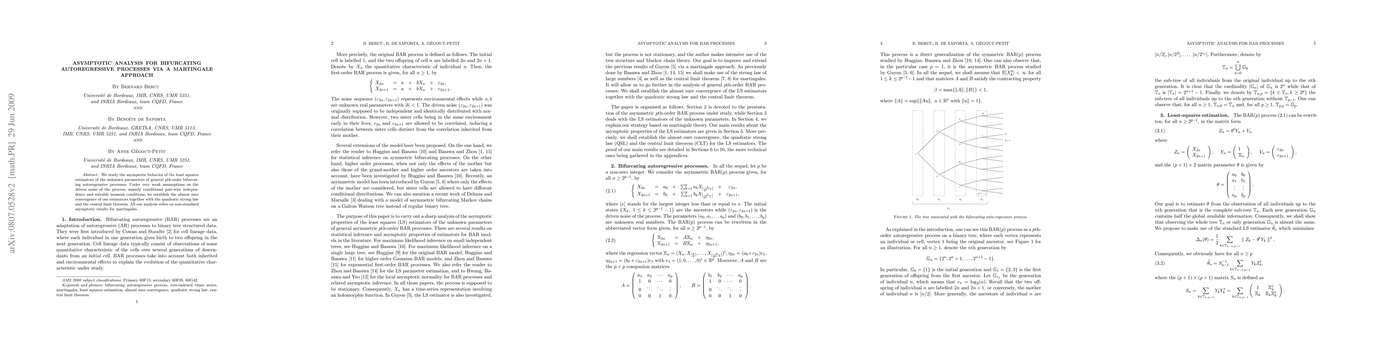 This paper investigates the asymptotic properties of least squares estimators for bifurcating autoregressive processes, proving almost sure convergence, quadratic strong law, and central limit theorem under minimal assumptions on the noise, using martingale-based non-standard asymptotic results.