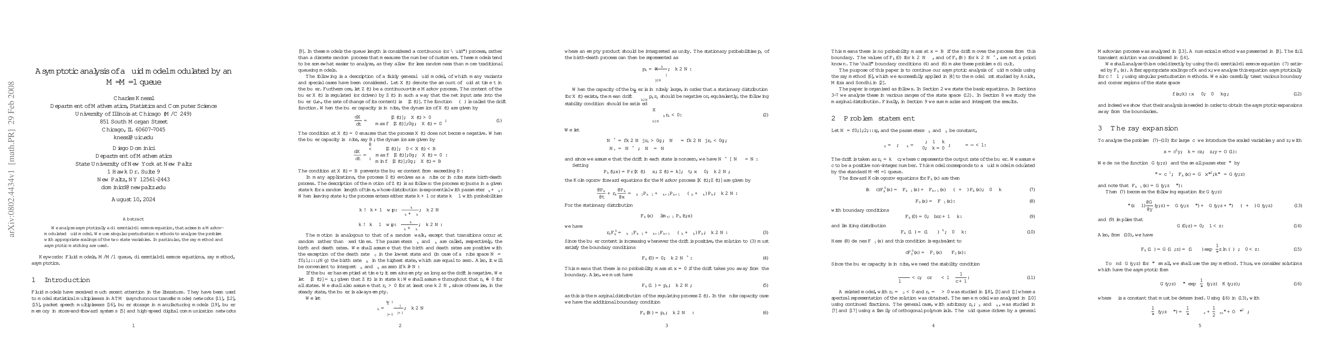 Researchers used singular perturbation methods to analyze a fluid model with an $M/M/1$ queue, focusing on asymptotic behavior and key findings.