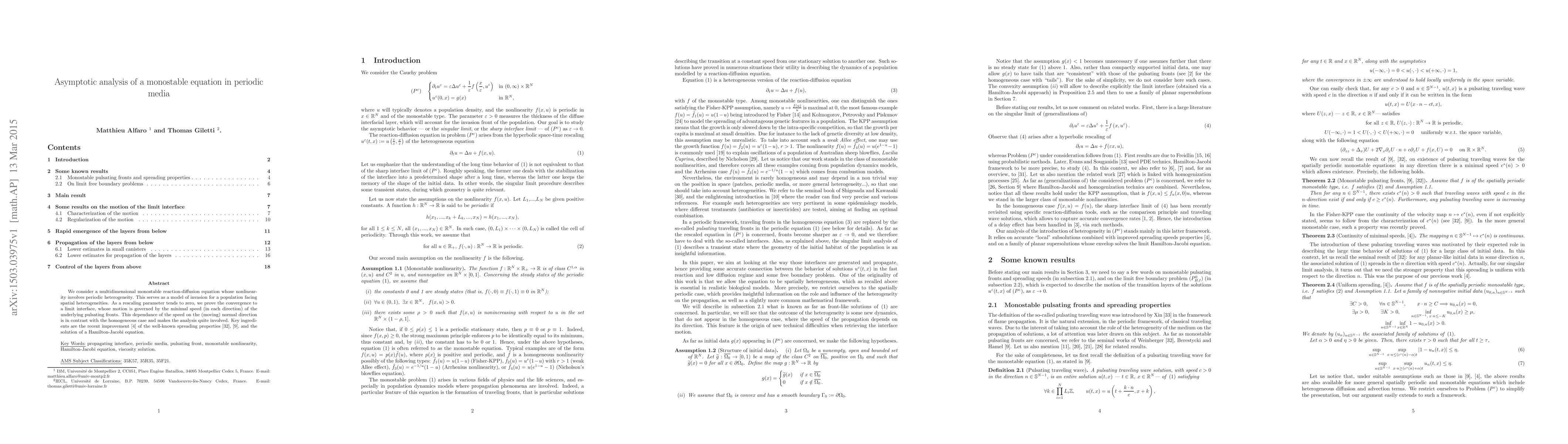 We consider a multidimensional monostable reaction-diffusion equation whose nonlinearity involves periodic heterogeneity. This serves as a model of invasion for a population facing spatial heterogeneities. As a rescaling parameter tends to zero, we prove the convergence to a limit interface, whose motion is governed by the minimal speed (in each direction) of the underlying pulsating fronts. This dependance of the speed on the (moving) normal direction is in contrast with the homogeneous case and makes the analysis quite involved. Key ingredients are the recent improvement \cite{A-Gil} of the well-known spreading properties \cite{Wein02}, \cite{Ber-Ham-02}, and the solution of a Hamilton-Jacobi equation.