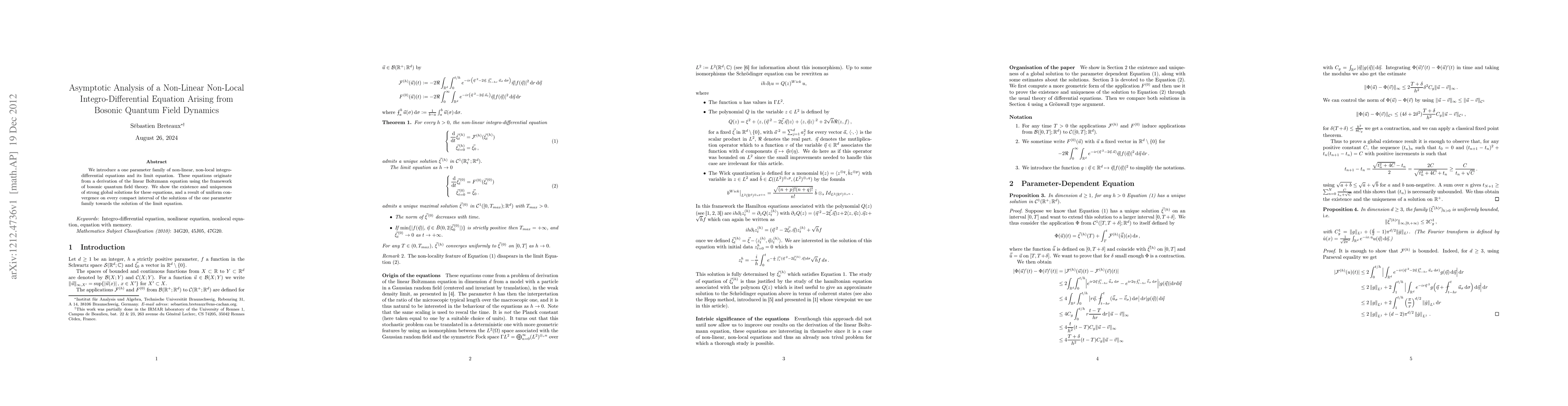 This paper investigates a family of non-linear, non-local integro-differential equations derived from bosonic quantum field theory, proving the existence and uniqueness of strong global solutions, and demonstrating uniform convergence of these solutions to the limit equation on compact intervals.