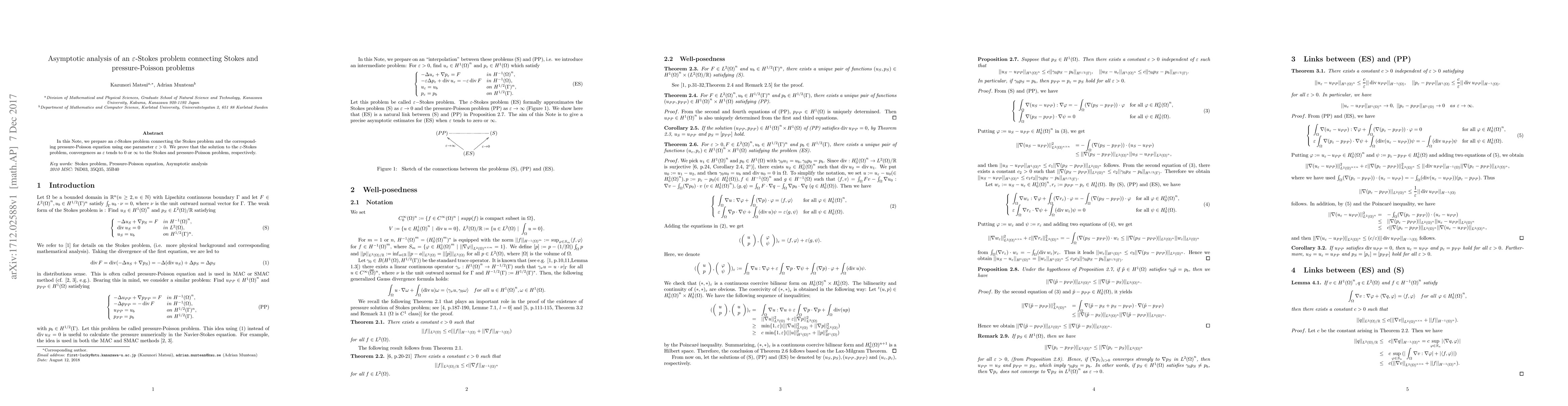 This paper develops an $\varepsilon$-Stokes problem that bridges the Stokes and pressure-Poisson equations, proving that its solution converges to the respective problem as $\varepsilon$ approaches 0 or infinity.