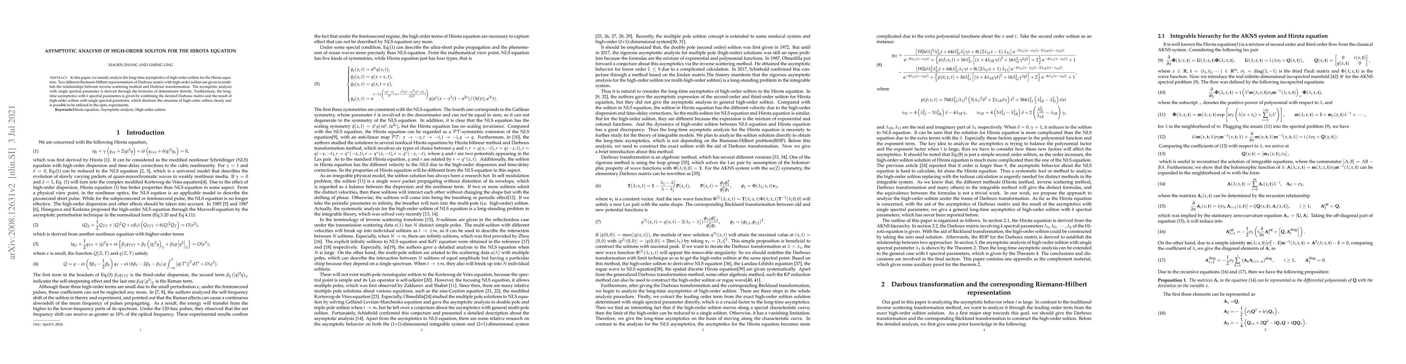 Researchers analyze the long-time behavior of high-order solitons in the Hirota equation using Riemann-Hilbert representations and asymptotic analysis, revealing its structure for optic experiments.