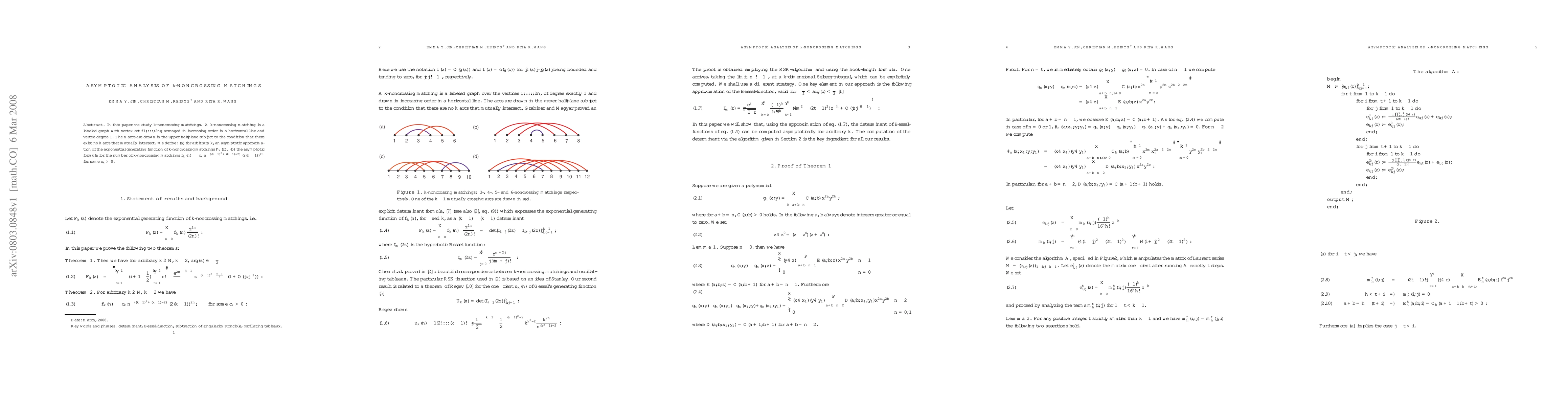 This paper investigates $k$-noncrossing matchings, deriving an asymptotic approximation for their exponential generating function $F_k(z)$ and a formula for the number of such matchings $f_k(n)$, showing it scales as $c_k n^{-((k-1)^2+(k-1)/2)} (2(k-1))^{2n}$ for some positive $c_k$.