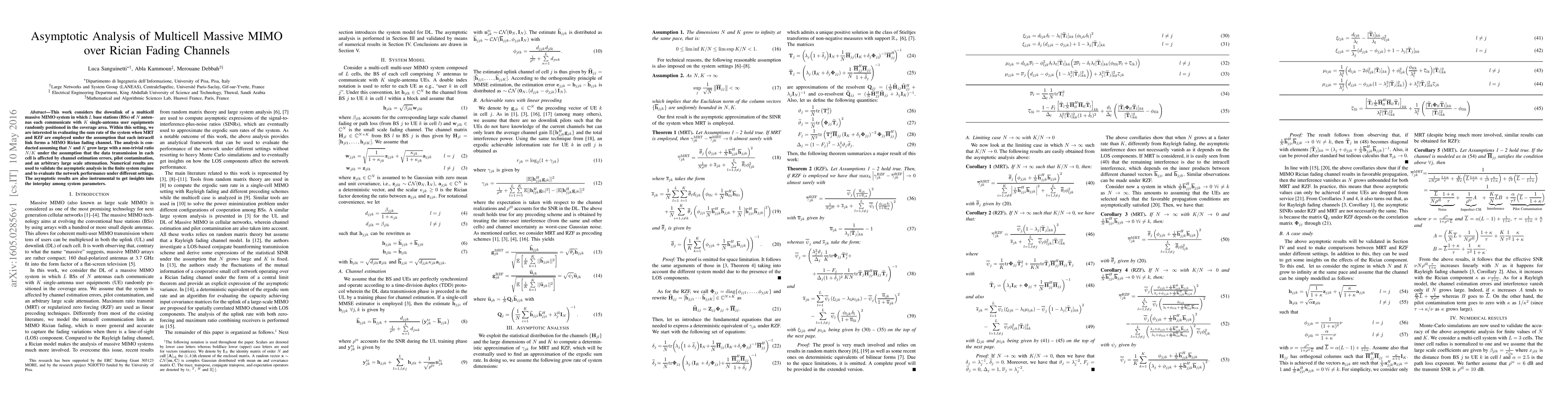 This paper analyzes the sum rate of a multicell massive MIMO system under Rician fading channels, employing MRT and RZF techniques. The asymptotic behavior is studied as the number of antennas and users grows large, considering channel estimation errors and pilot contamination. Numerical results validate the analysis and provide insights into the system's performance.