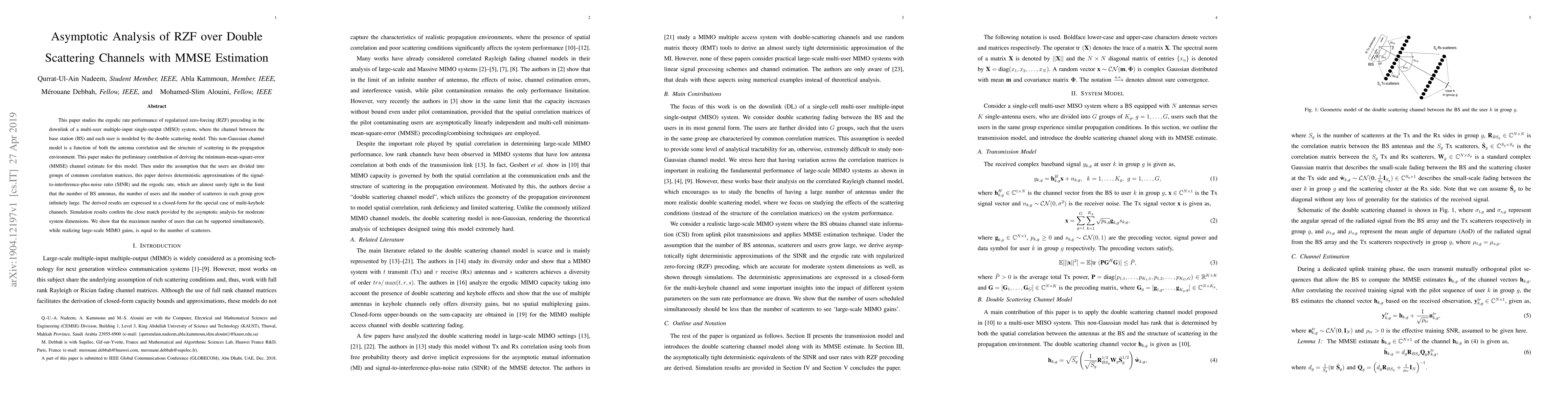This paper analyzes the ergodic rate performance of RZF precoding in a multi-user MISO system with double scattering channels, deriving MMSE channel estimates and asymptotic approximations for SINR and ergodic rate under large-scale conditions. Simulation results validate the accuracy of the asymptotic analysis for moderate system sizes.