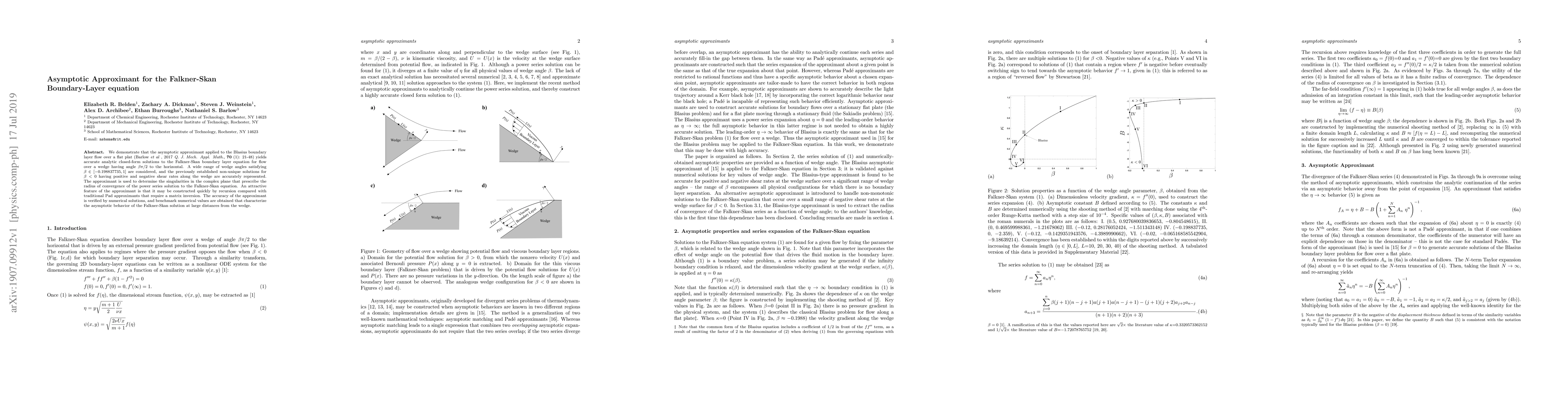 This paper presents an asymptotic approximant for the Falkner-Skan boundary layer equation, demonstrating its accuracy in providing closed-form solutions for flows over wedges with angles ranging from -0.198837735 to 1. The method efficiently determines singularities and compares favorably with traditional Padé approximants in terms of computational speed.