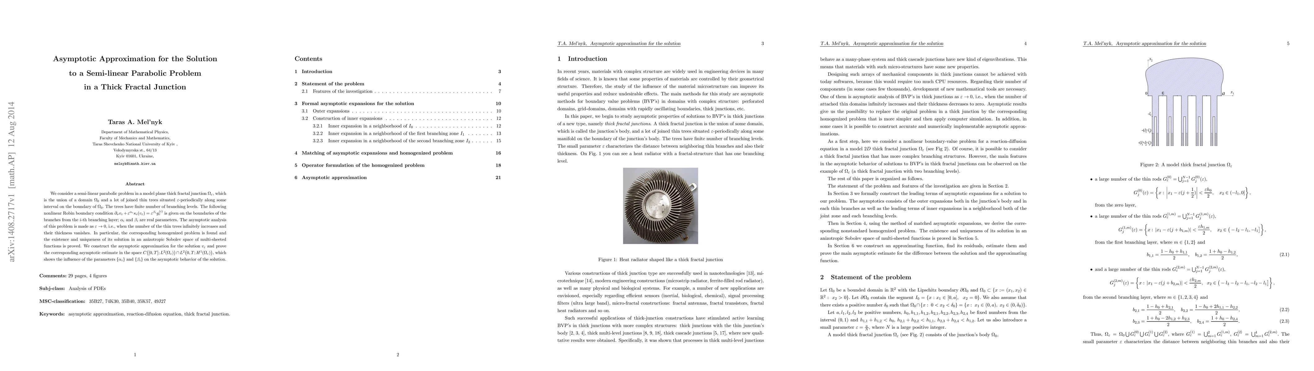 Researchers developed an asymptotic approximation for a semi-linear parabolic problem in a fractal junction with infinitely increasing thin trees. They found the corresponding homogenized problem and proved the existence and uniqueness of its solution, showing how parameters influence the asymptotic behavior of the solution.