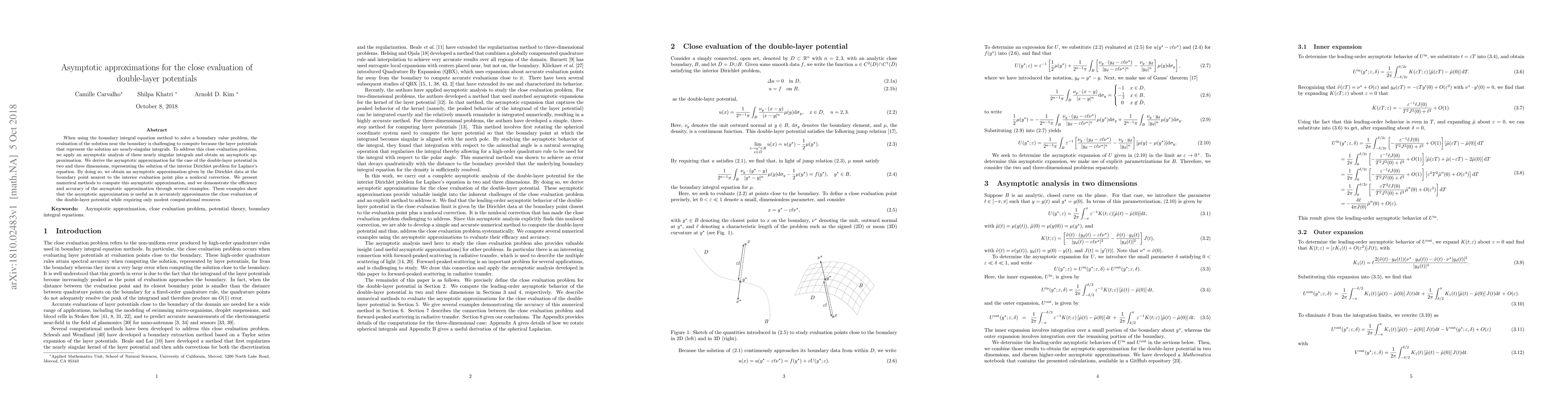 This paper develops asymptotic approximations for the evaluation of double-layer potentials near boundaries, addressing the computational challenge of nearly singular integrals in boundary integral equations. The derived approximations provide accurate solutions with modest computational effort, validated through numerical methods and examples.