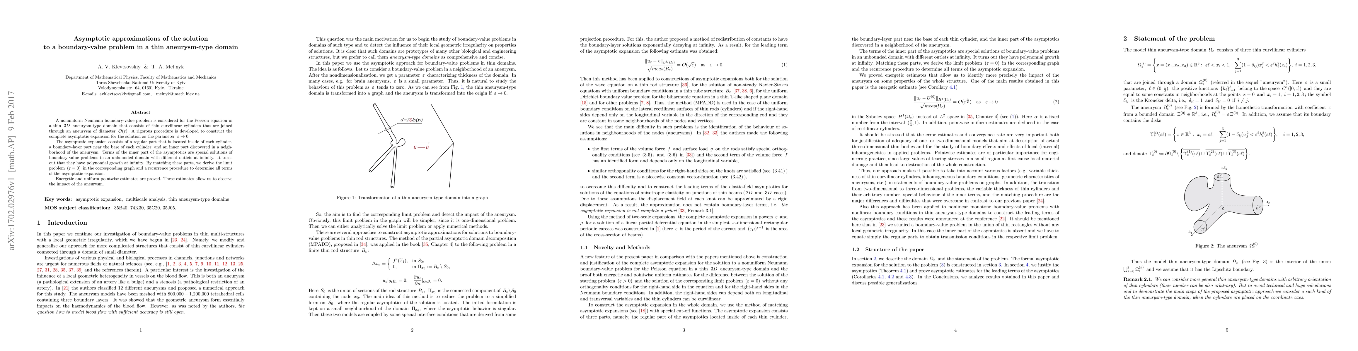 A research paper develops an asymptotic expansion for solving a boundary-value problem in a thin 3D aneurysm-type domain, capturing the effects of a small aneurysm on the solution's behavior.