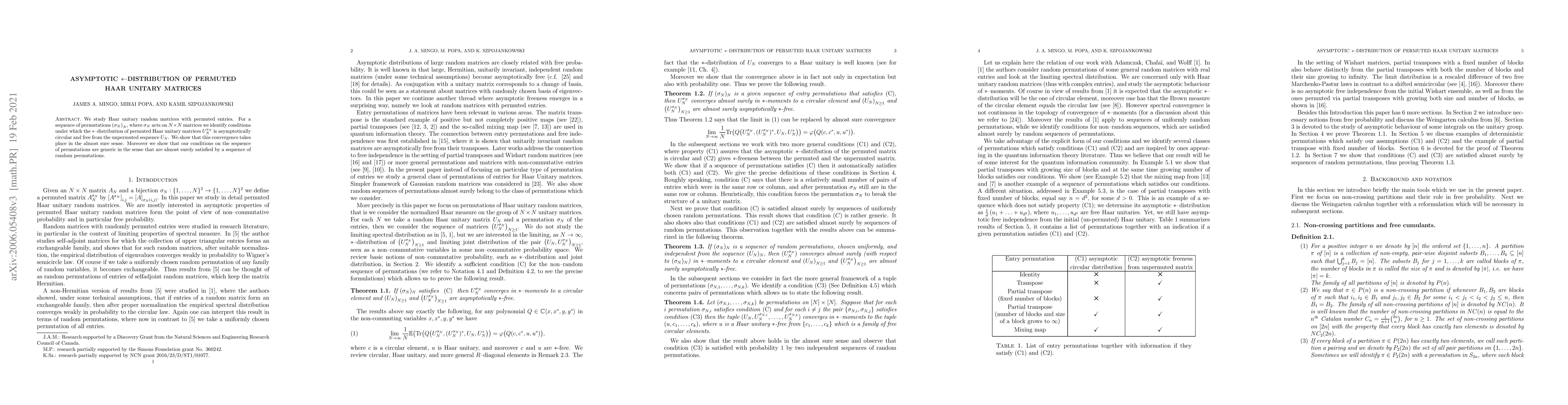 We study Haar unitary random matrices with permuted entries. For a sequence of permutations $\left(\sigma_N\right)_N$, where $\sigma_N$ acts on $N\times N$ matrices we identify conditions under which the $\ast$--distribution of permuted Haar unitary matrices $U_N^{\sigma_N}$ is asymptotically circular and free from the unpermuted sequence $U_N$. We show that this convergence takes place in the almost sure sense. Moreover we show that our conditions on the sequence of permutations are generic in the sense that are almost surely satisfied by a sequence of random permutations.