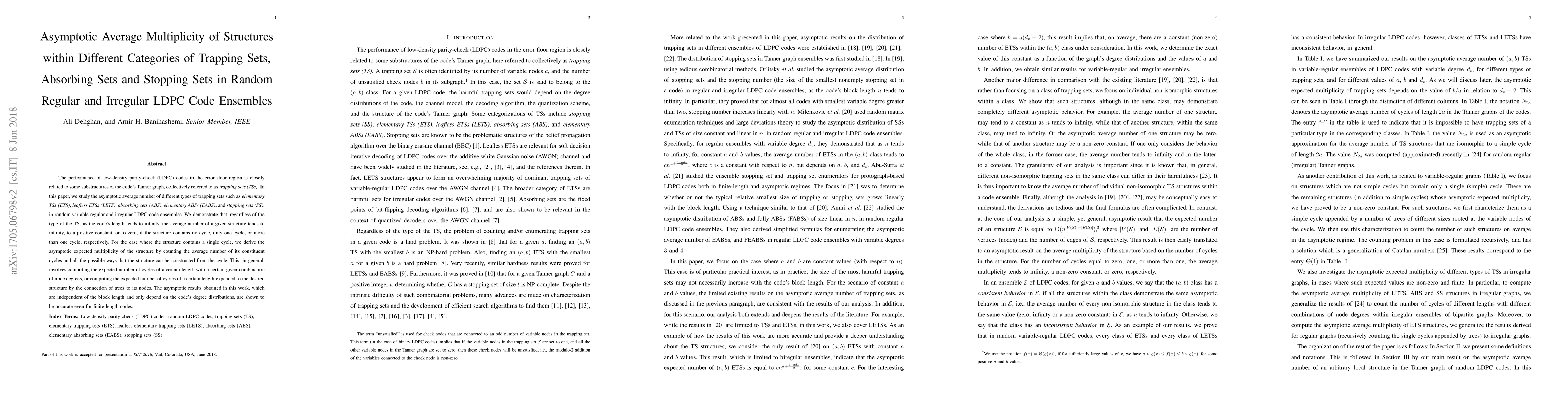 This paper investigates the asymptotic average multiplicity of various trapping sets, absorbing sets, and stopping sets in random regular and irregular LDPC codes. It finds that the average number of such structures tends to a constant, zero, or infinity depending on the number of cycles they contain, providing accurate estimates even for finite-length codes.
